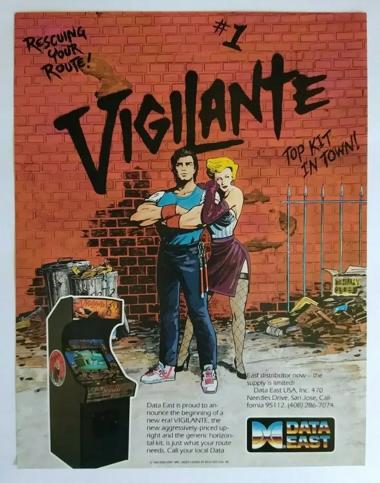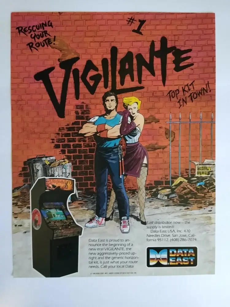 Arcade: Flyer Theme: Street Fighting Modified Item: No Country/Region of Manufacture: United States Original/Reproduction: Original Year: 1988 Game Title: Vigilante Brand: Data East