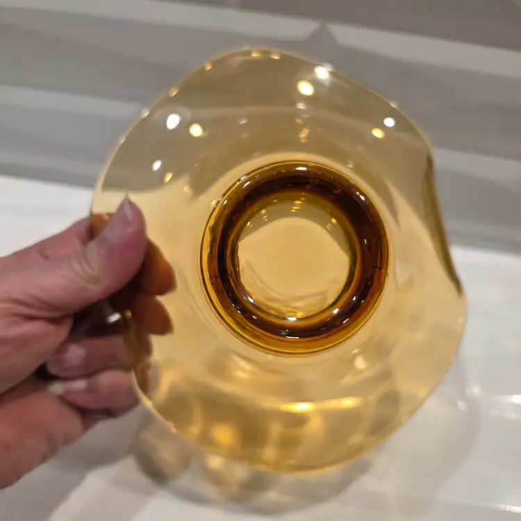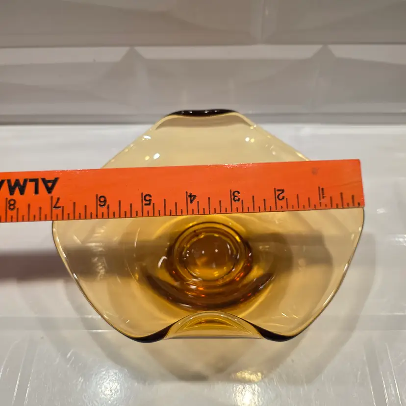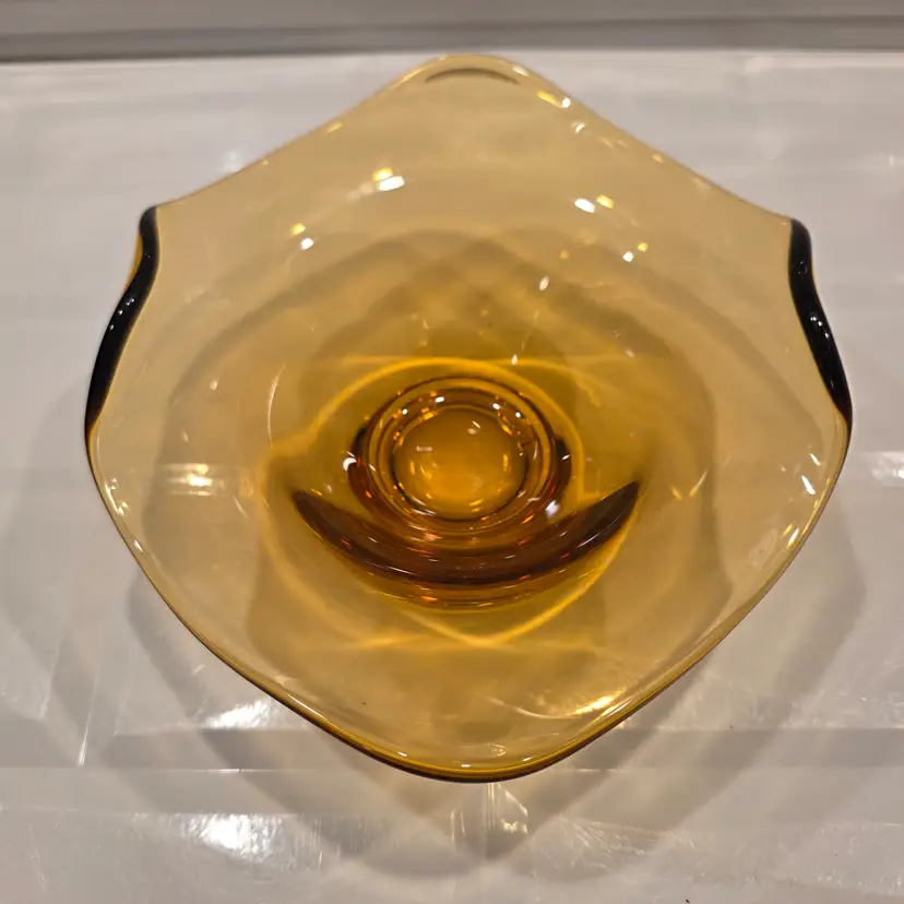 Viking Amber Glass Bon Bon Candy Dish Bow Epic Vintage good condition no chips or cracks Please review photos