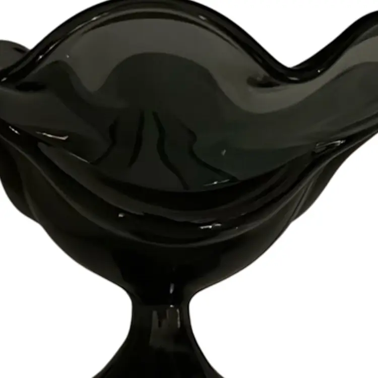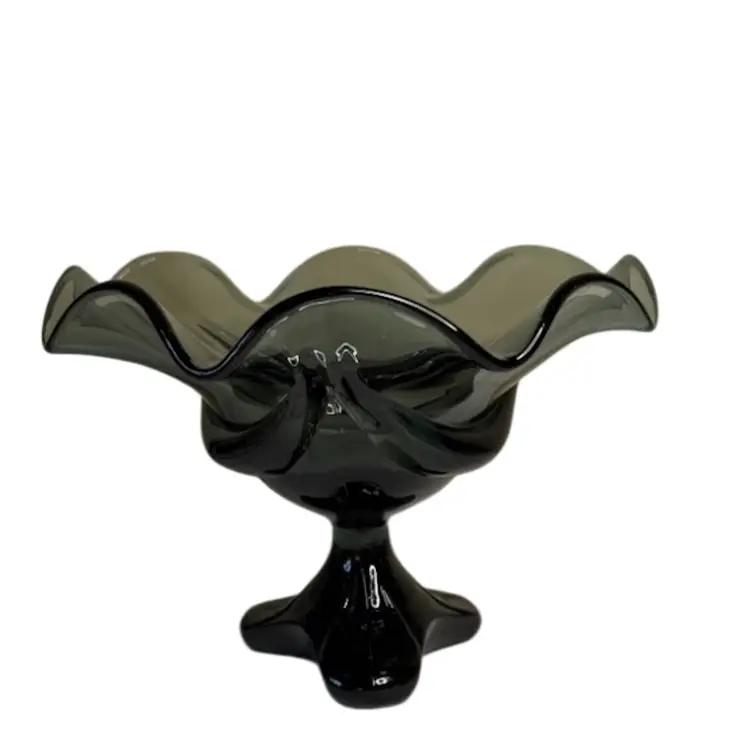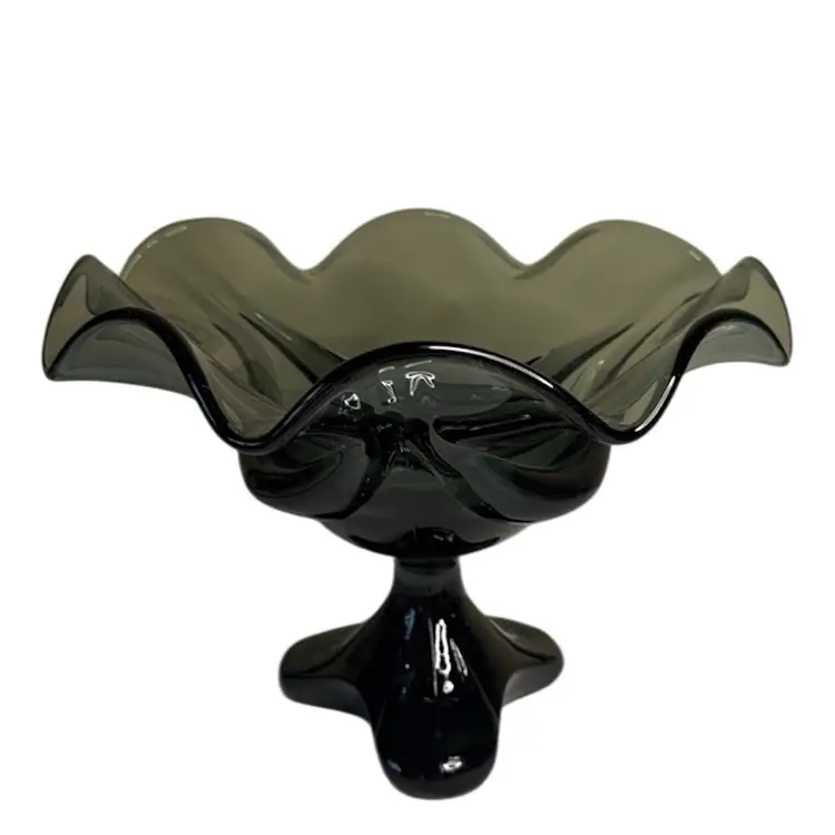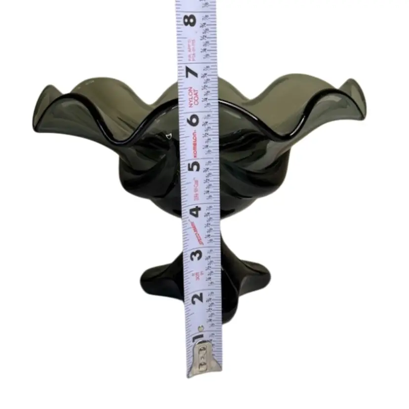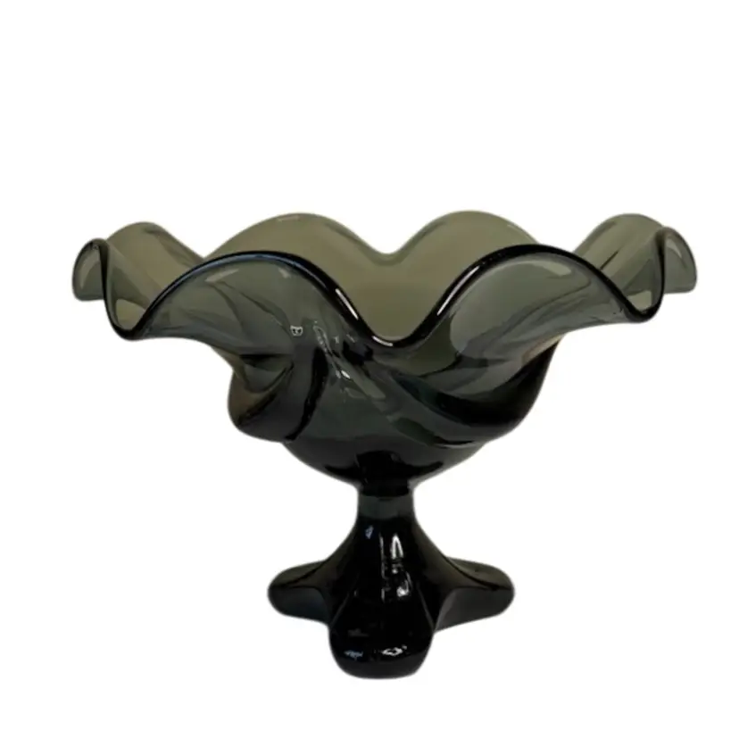 Stunning Viking charcoal Art Glass Epic Drape Pedestal Compote/CandyDish.
