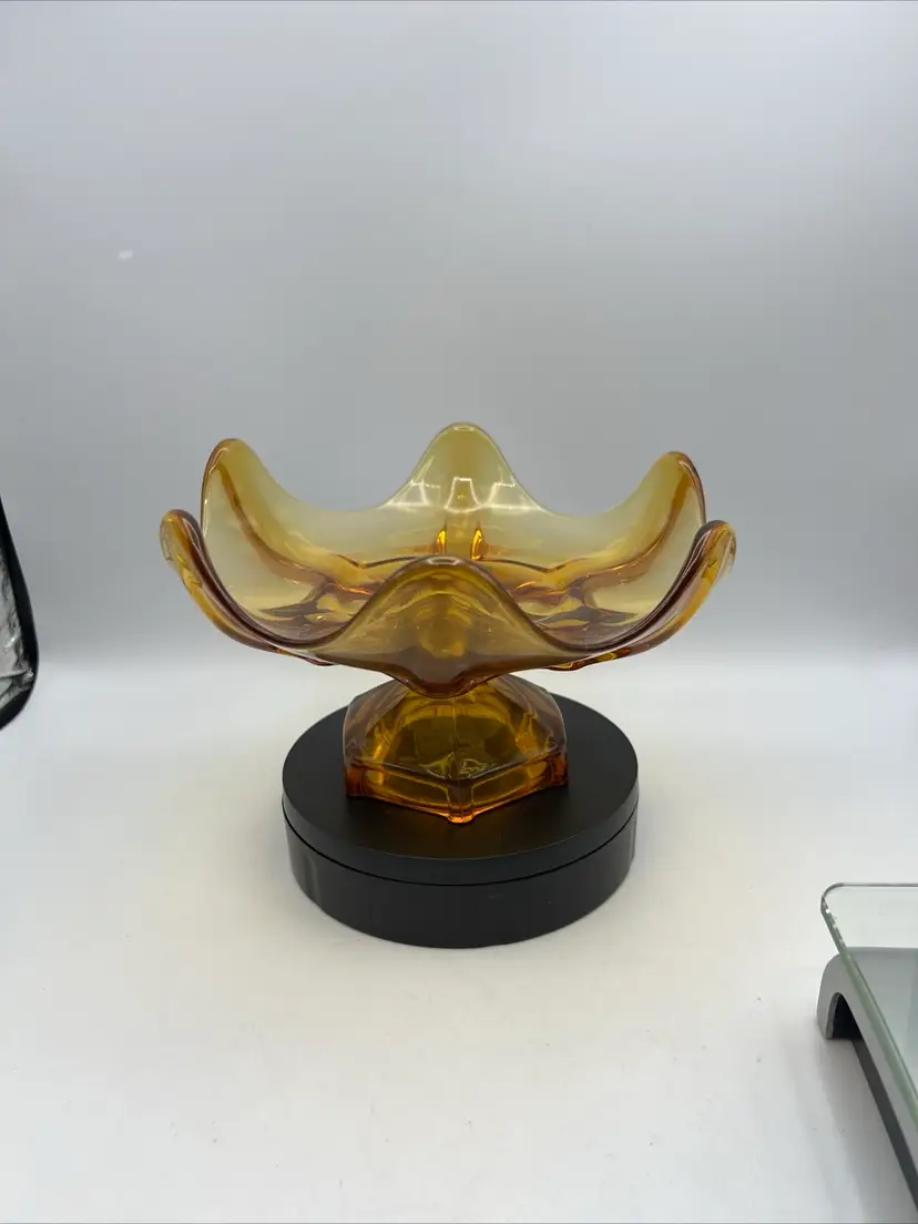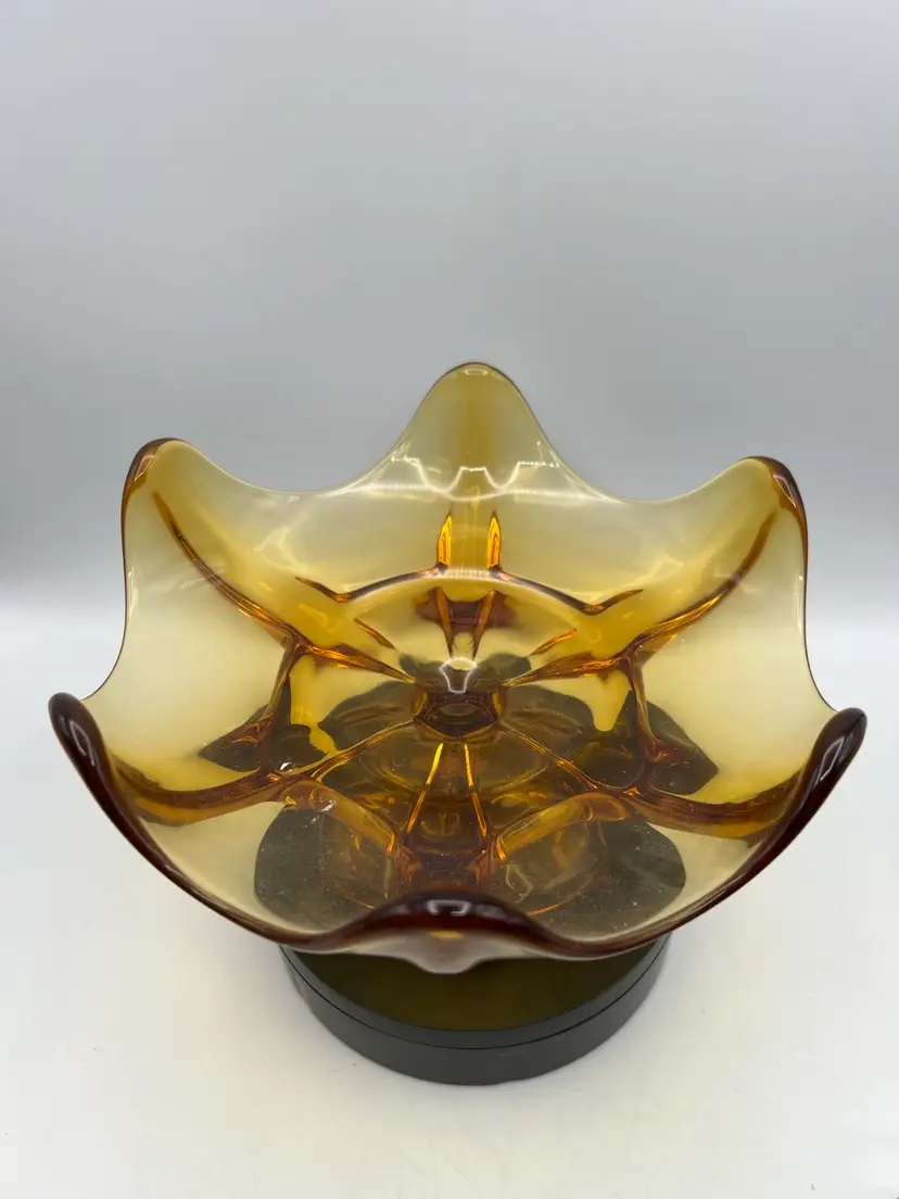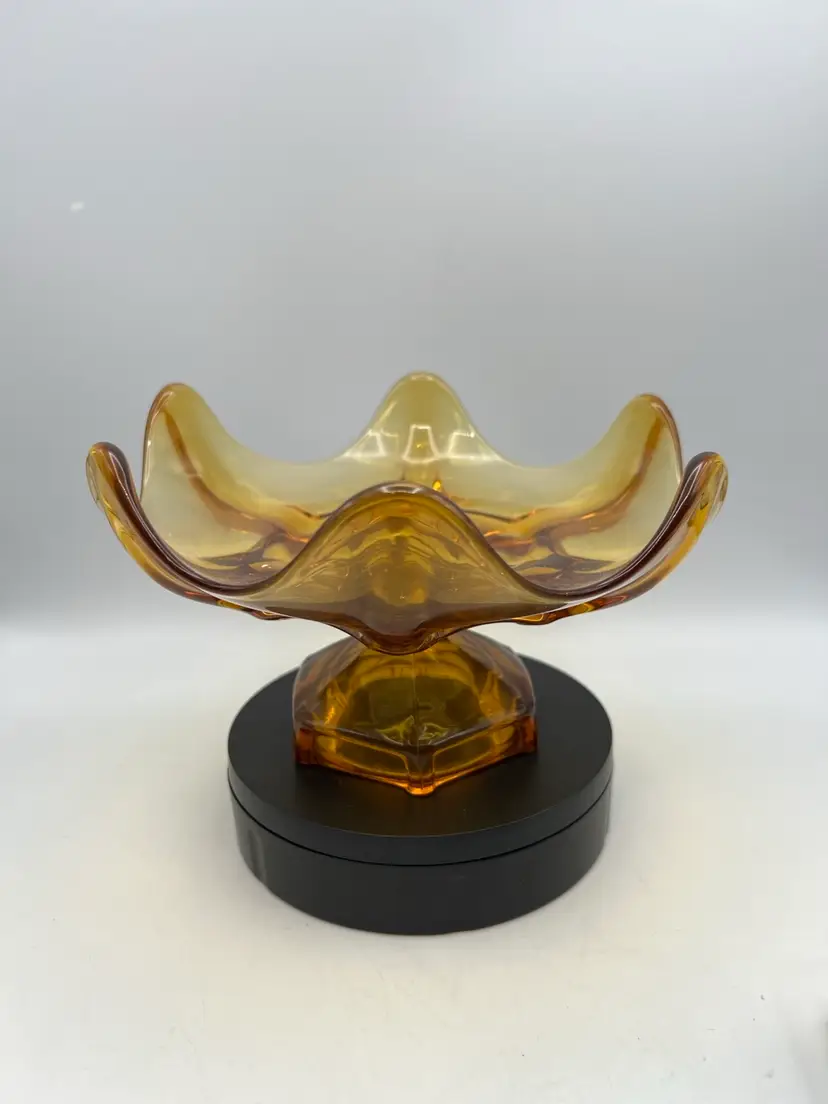 Vintage Viking Epic Amber 6 Finger Glass Compote/Bowl Hexagon Base 8.5"