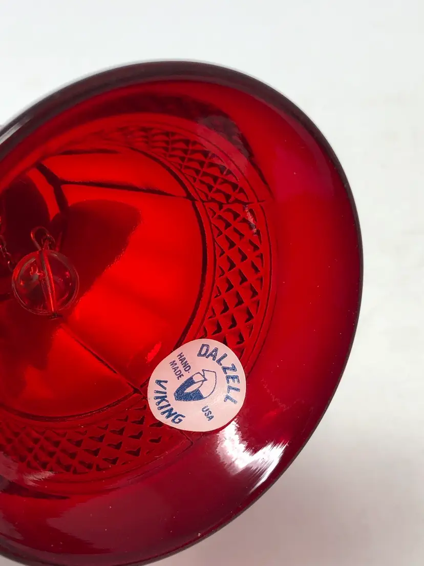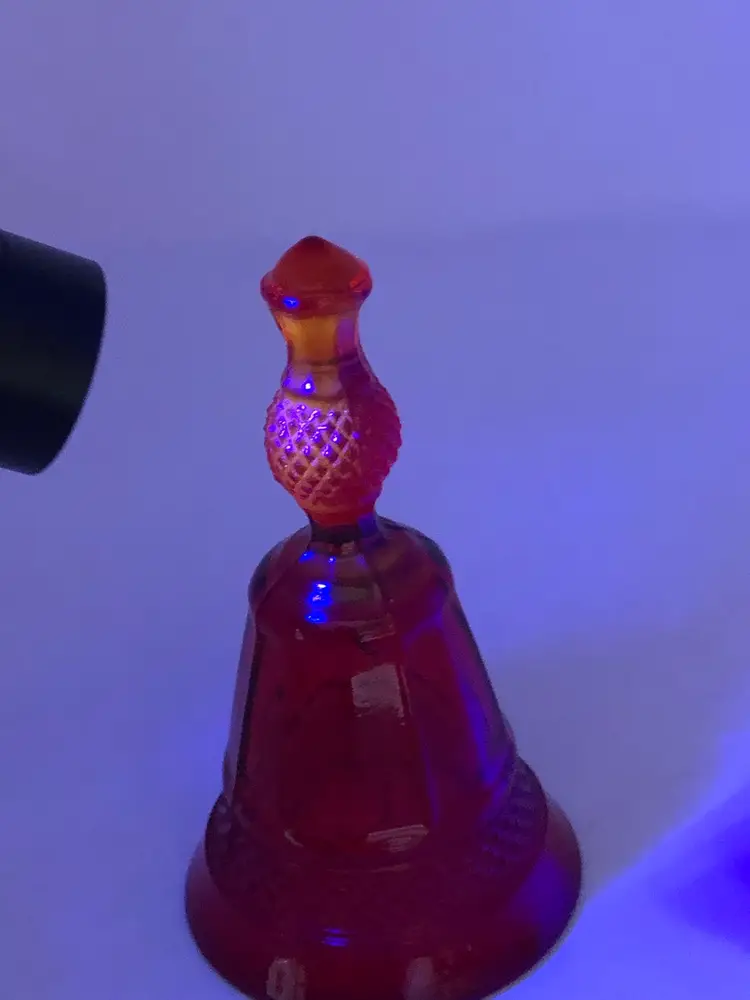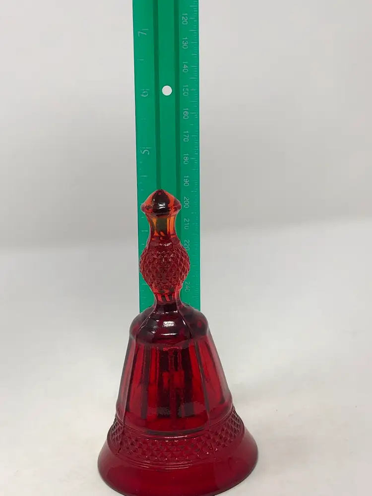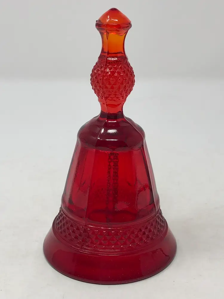 Diamond point paneled bell in excellent condition. 4 1/2" tall with original label and cadmium glow