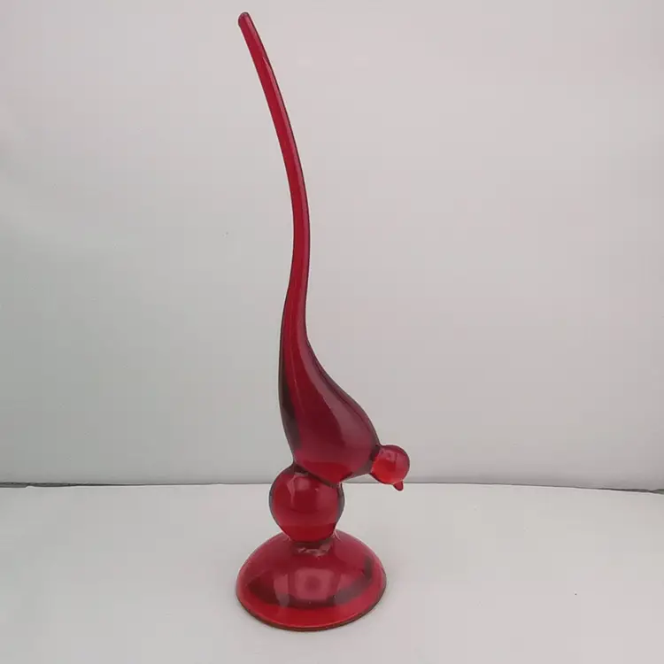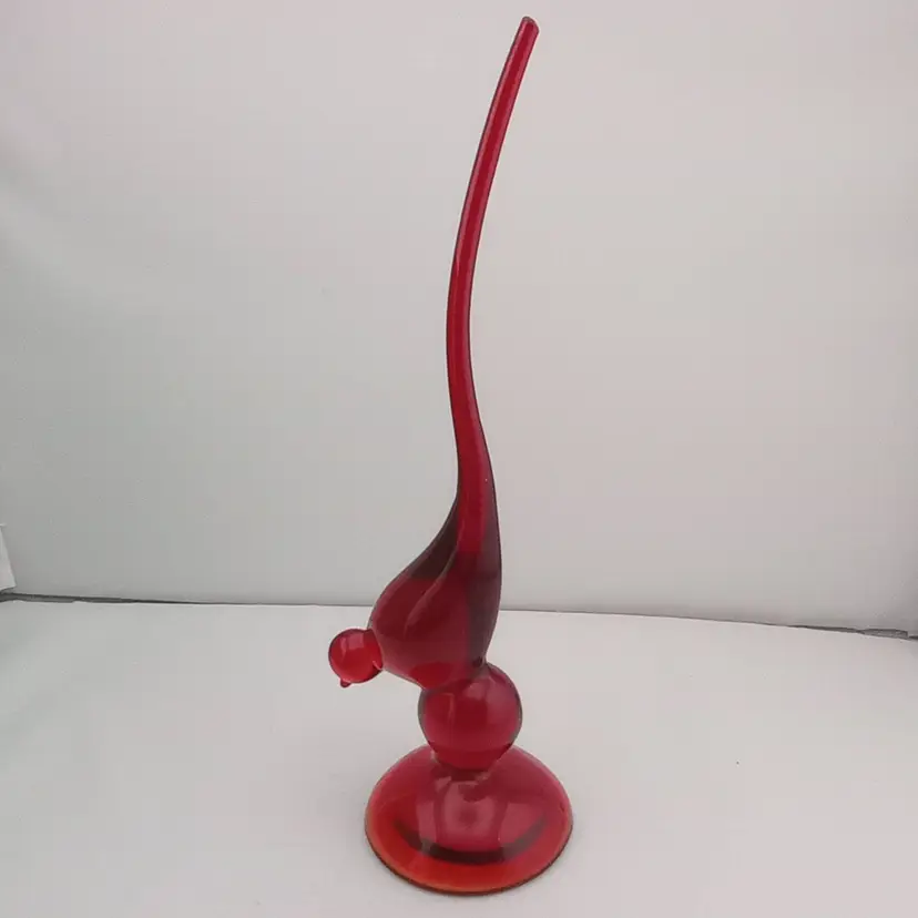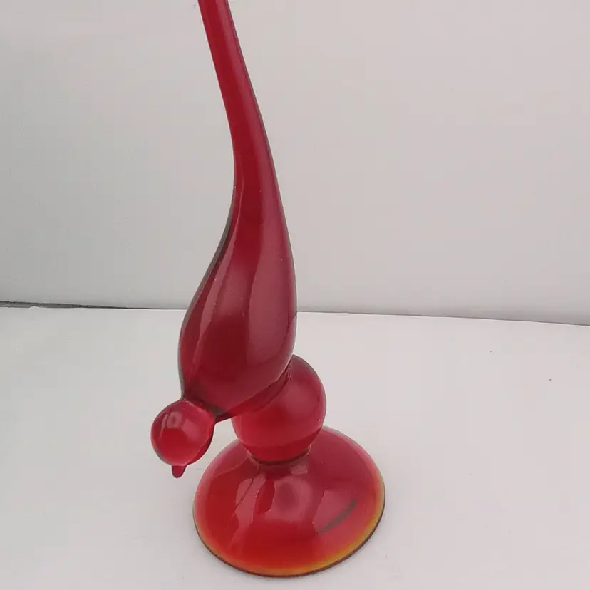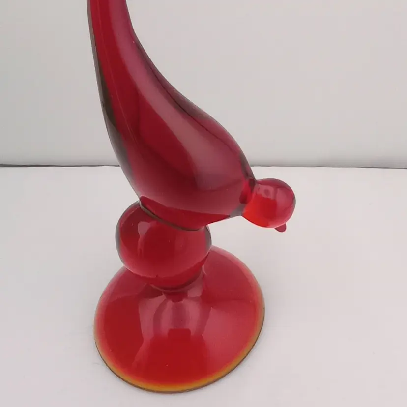 This is a stunning Viking Epic long-tailed bird in amberina glass -- it glows!! It's 9.5" tall and in almost perfect condition with a flea bite on the end of the tail.