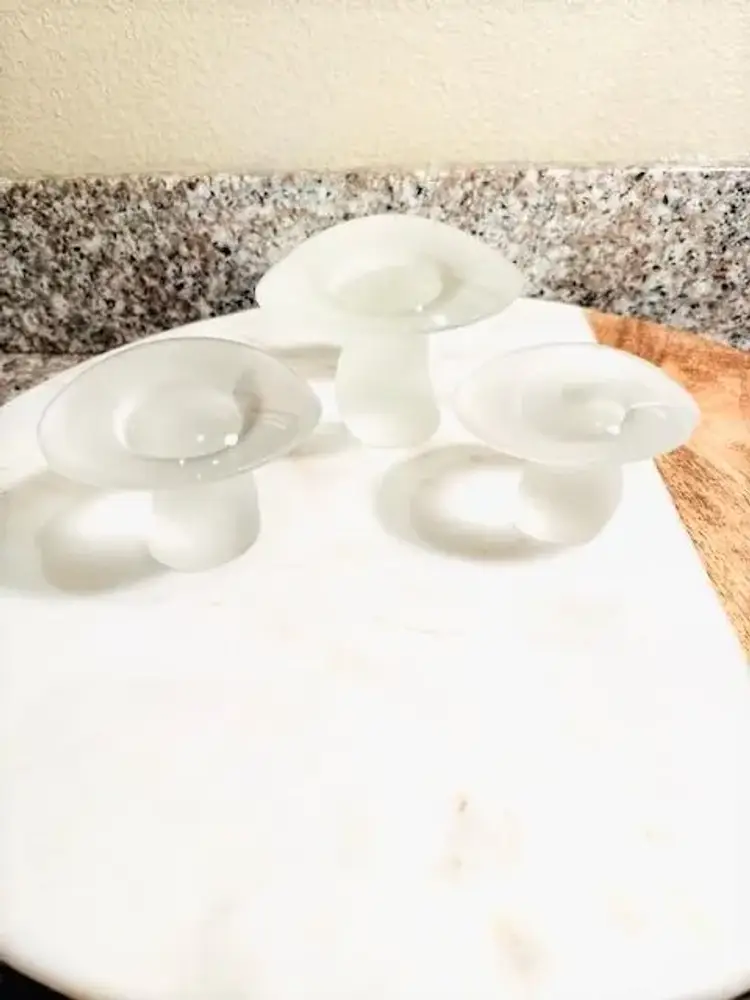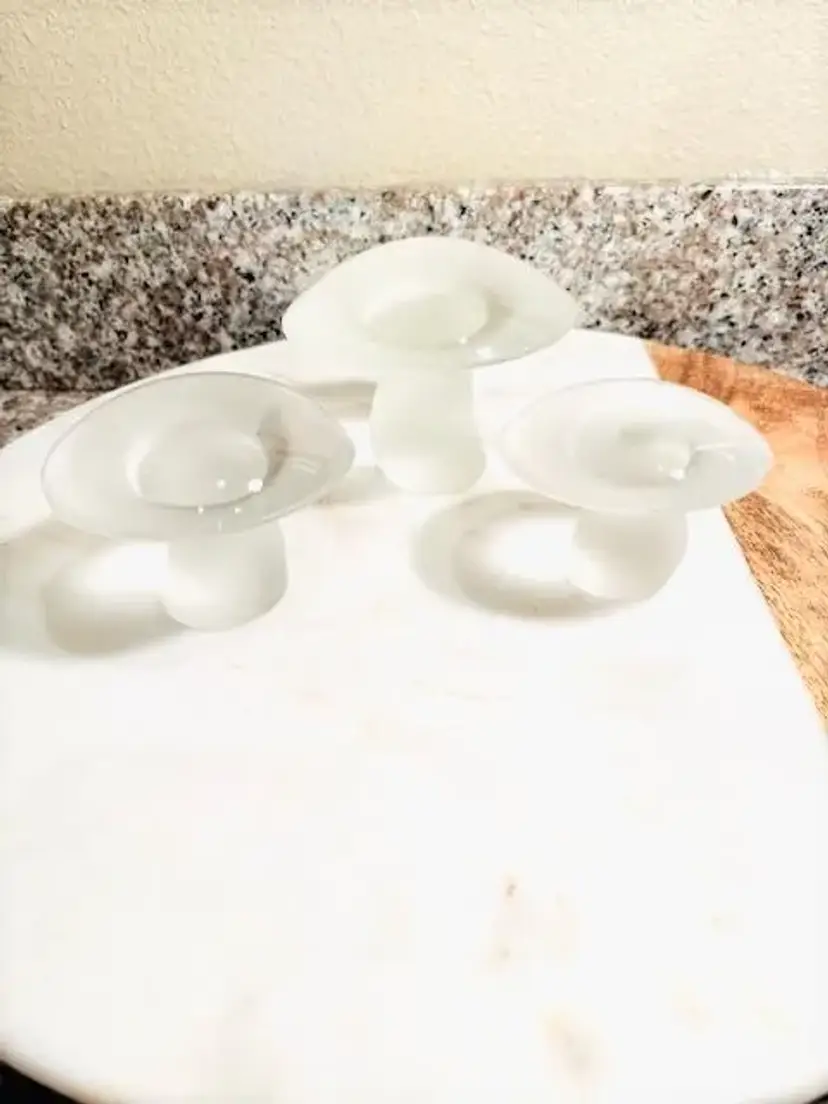 Viking Frosted Glass Mushrooms Figurines Set of 3 Trio | Vintage MCM Viking Retro Mushroom Set Frosted and Clear Glass Mushroom Home Decor