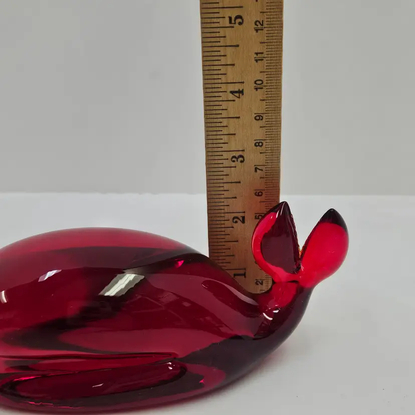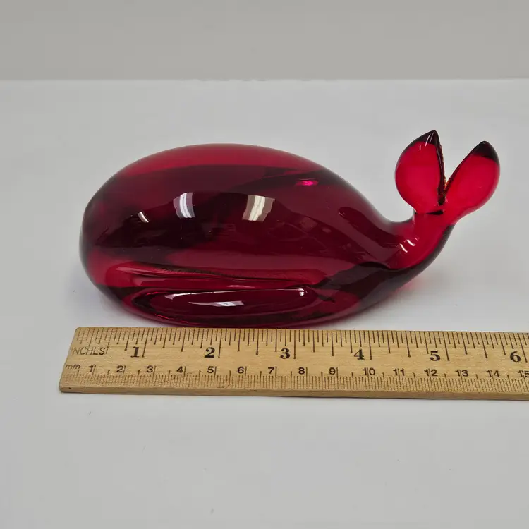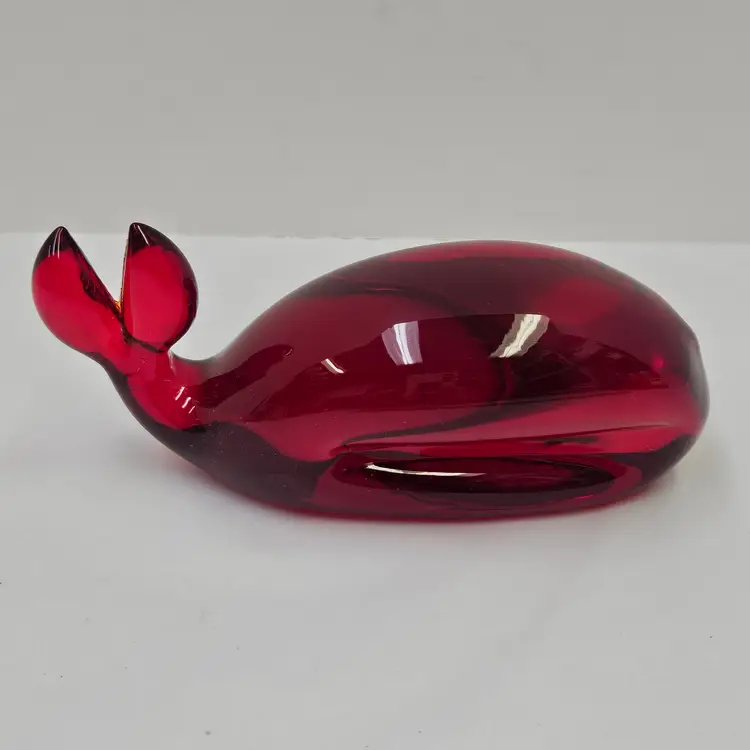 Viking glass whale, glowy in front, 2.5"x5.5", no chips or cracks, light shelf wear.