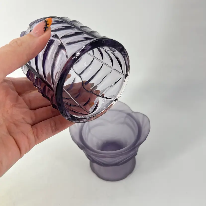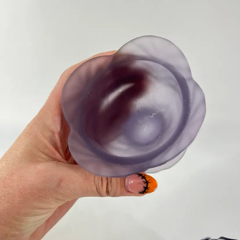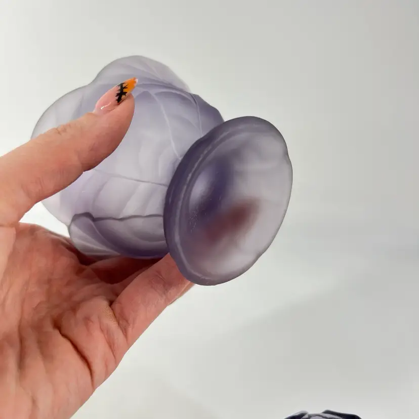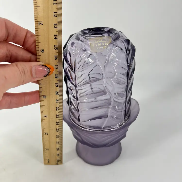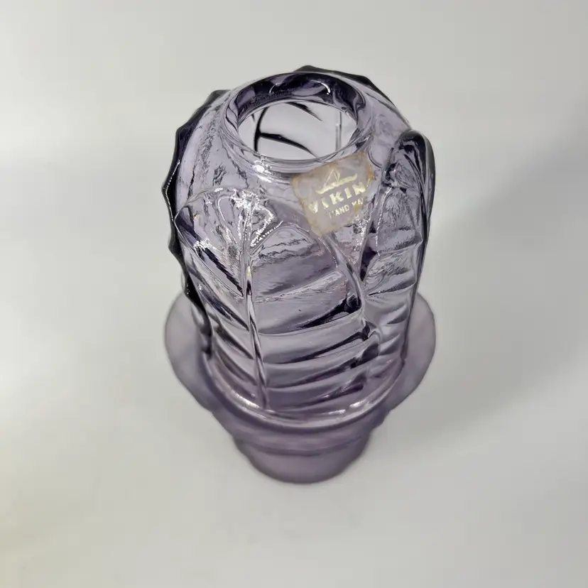 This fairy light is attributed to Viking. There is a small internal crack on the interior rim of the base. It measures approx 7" tall.
