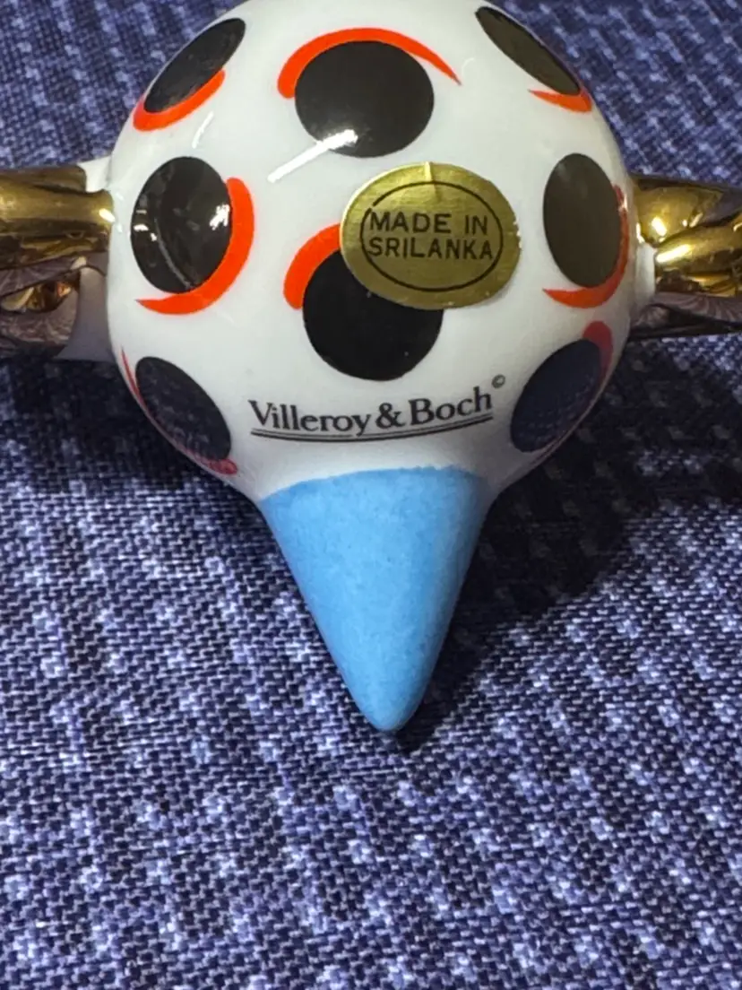 Charming ceramic bird with vibrant red, blue, and gold details. Perfect for collectors. Villeroy & Boch Animal Park bird figurine or ornament, designed by Rosemarie Benedikt. This porcelain piece is part of the "Animal Park" collection, which was introduced in 1995 and discontinued in 2000 Excellent like new condition with no breaks or chips (101592325K170)