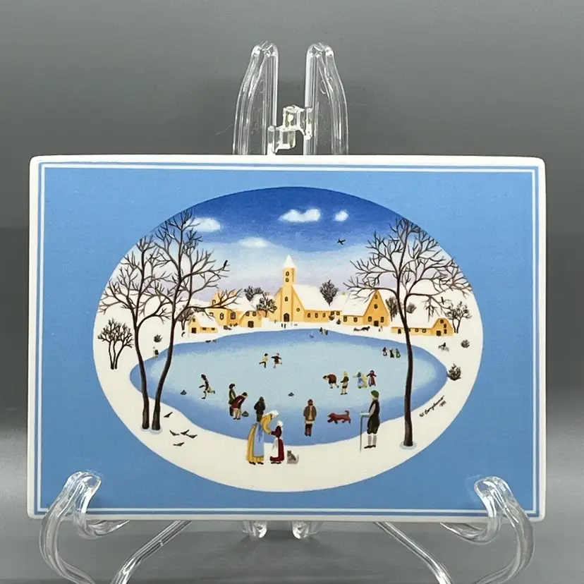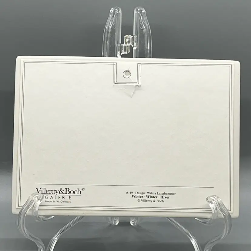 This is a Villeroy & Boch Vilbo Card Porcelain Post Card A49 ‘Winter’. Made in West Germany, it makes a beautiful piece of home decor for the winter season, simply put it on a plate stand as shown in the photos. It can also be hung by the hole on the paper backing.