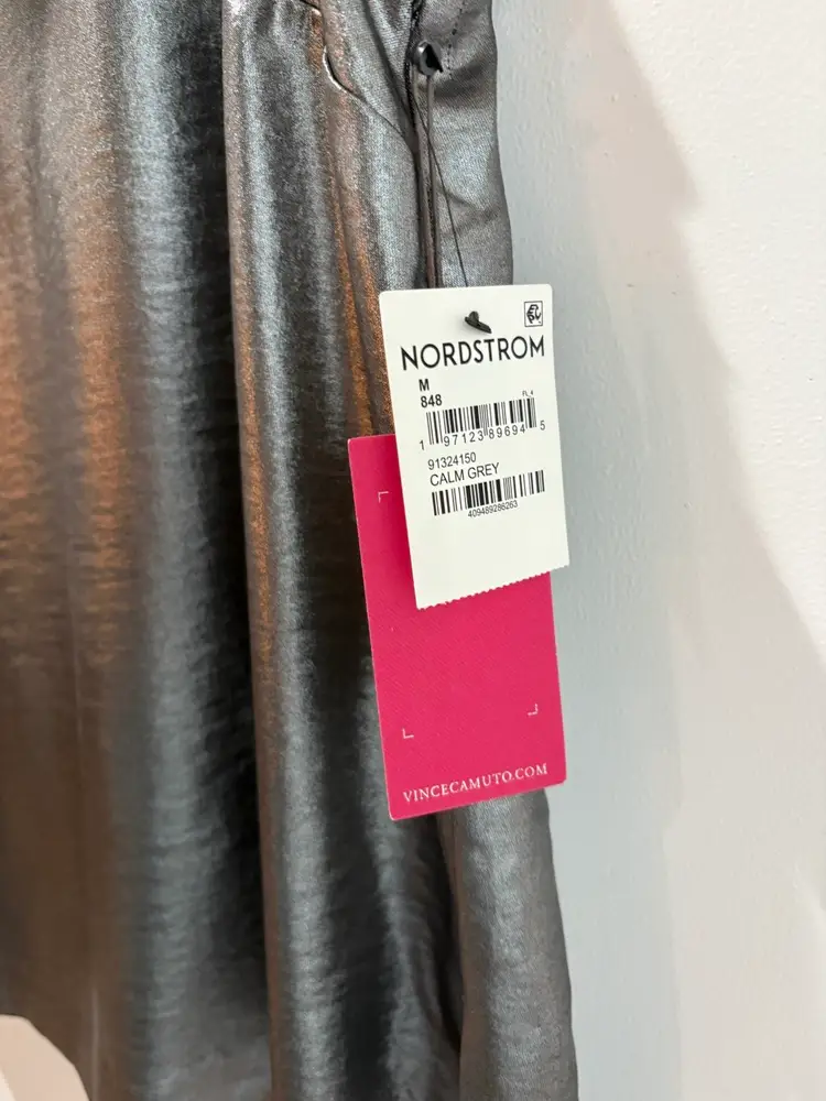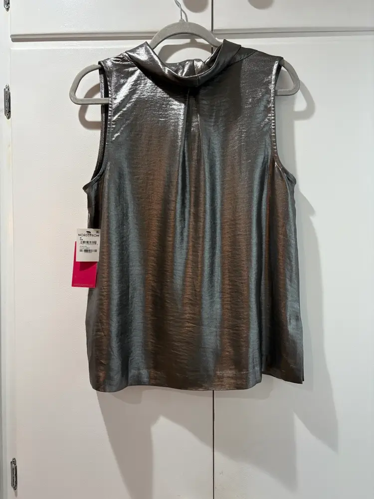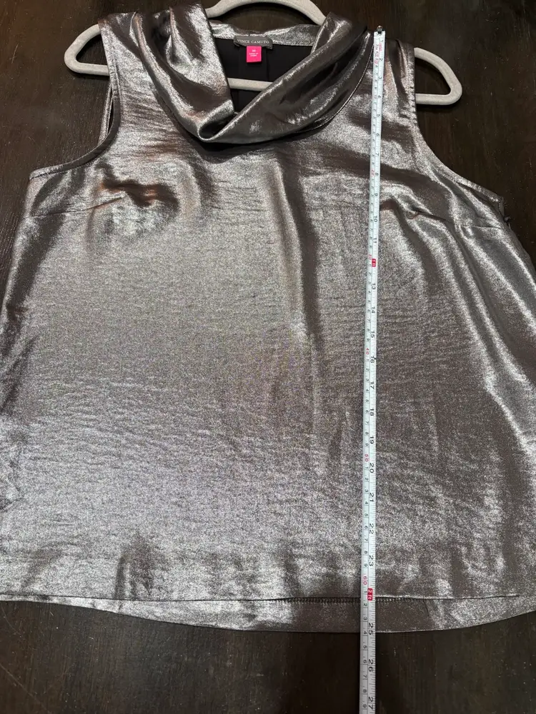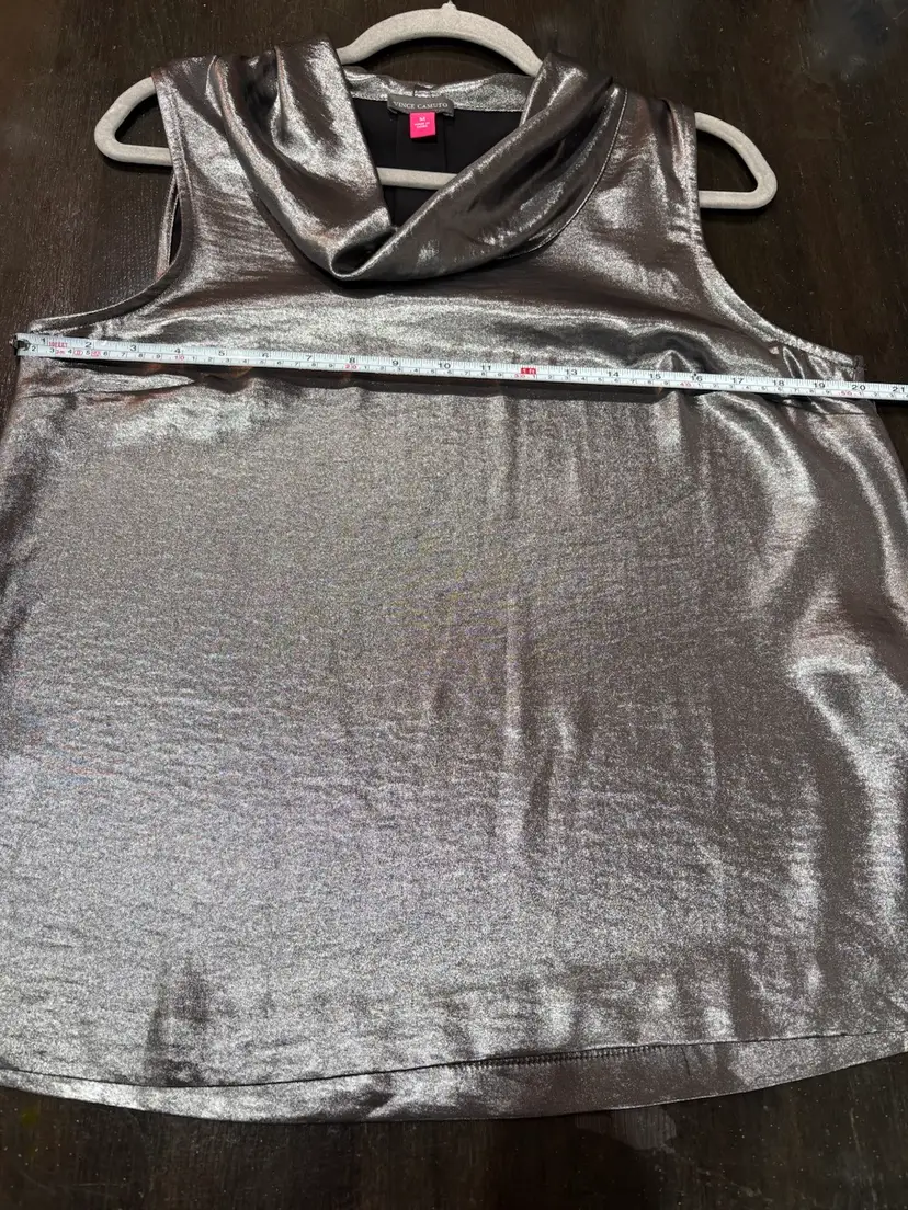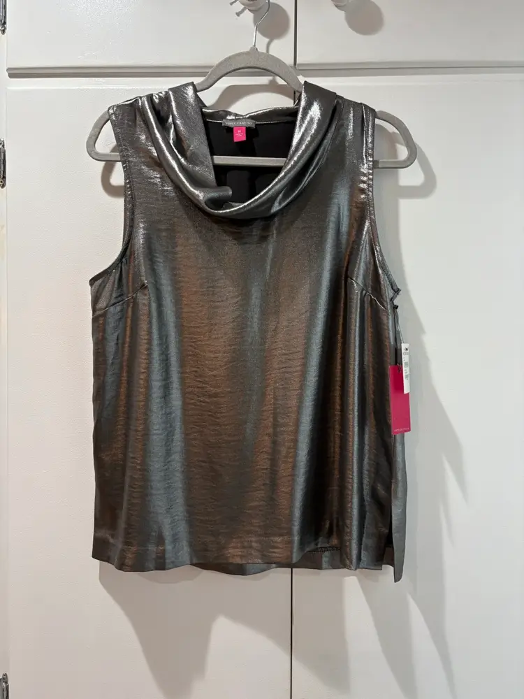 Vince Camuro Calm Grey Cowl Neck Sleeveless Top M Metallic NWT