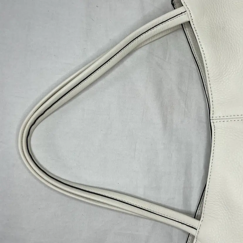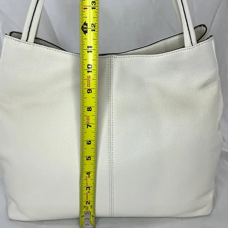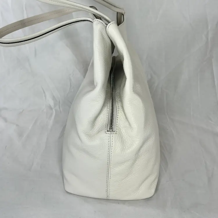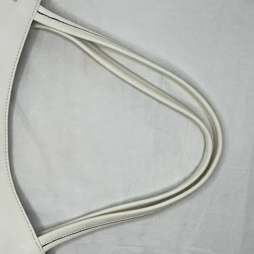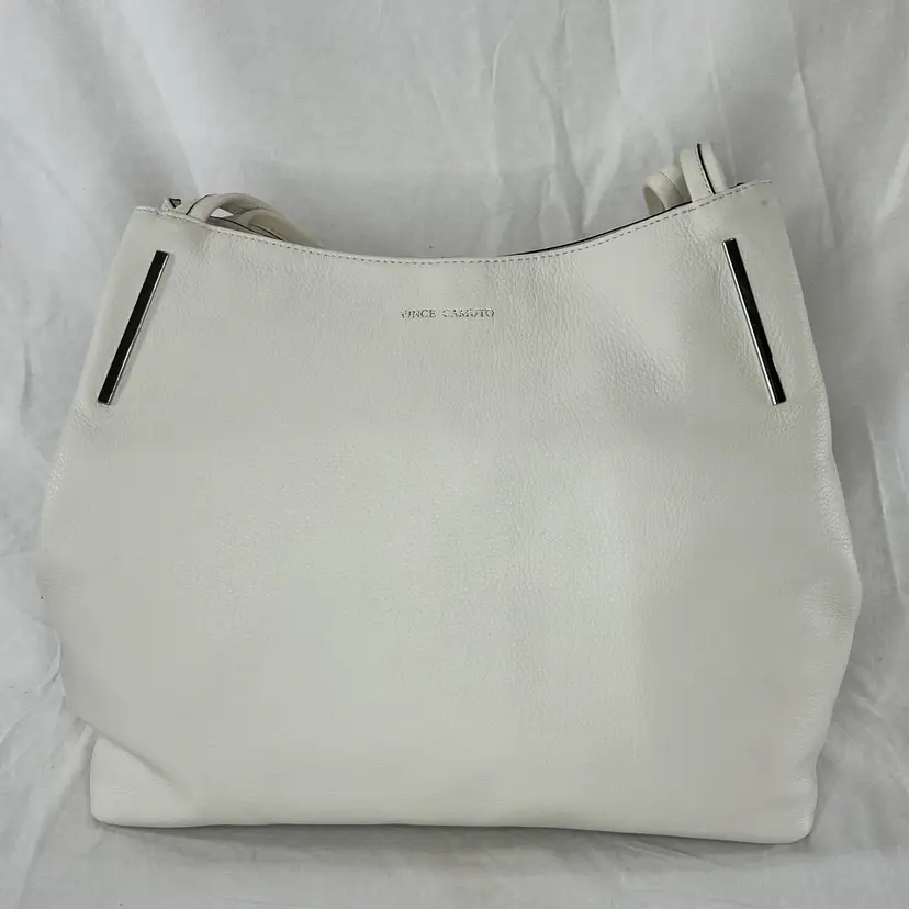 Elegant Vince Camuto tote bag crafted from high-quality white leather. This spacious and stylish bag is perfect for carrying all your essentials with ease.