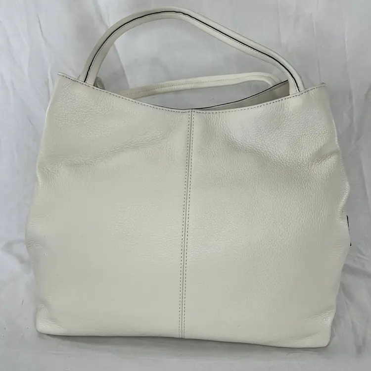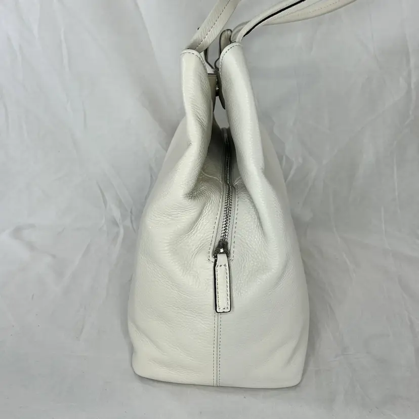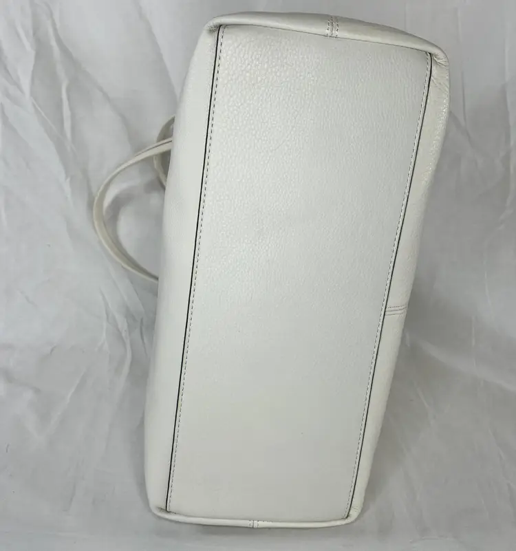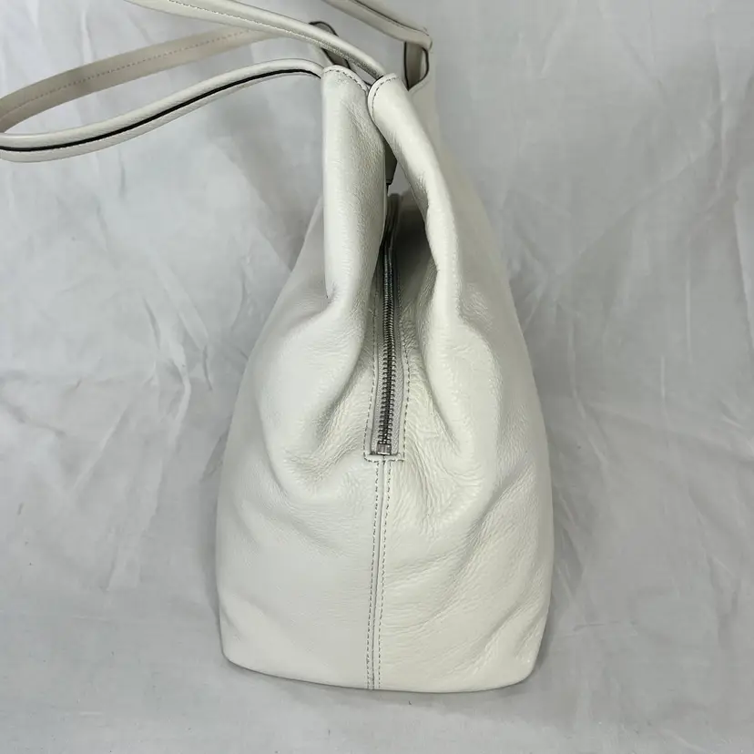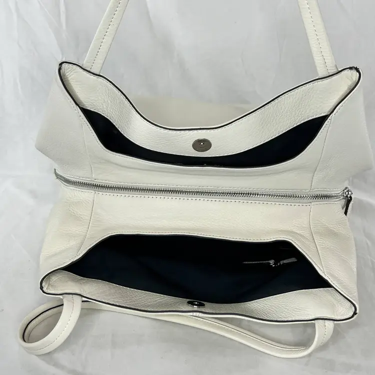 Elegant Vince Camuto tote bag crafted from high-quality white leather. This spacious and stylish bag is perfect for carrying all your essentials with ease.