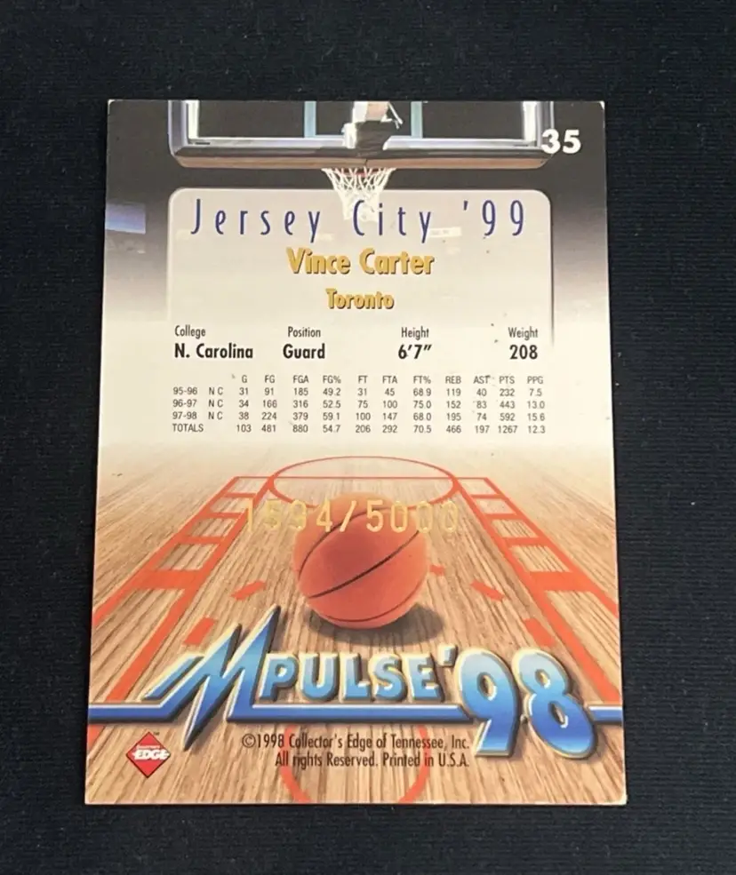 Vince Carter 1998 Impulse Jersey City '99 Gold /5000 #35 Rookie RC UNC Toronto Raptors