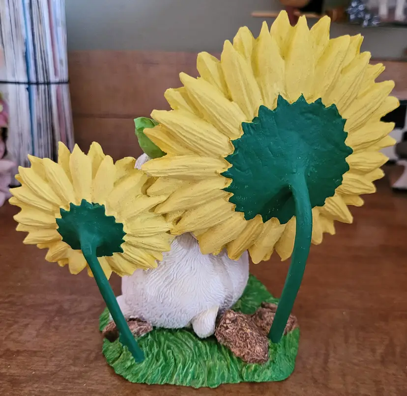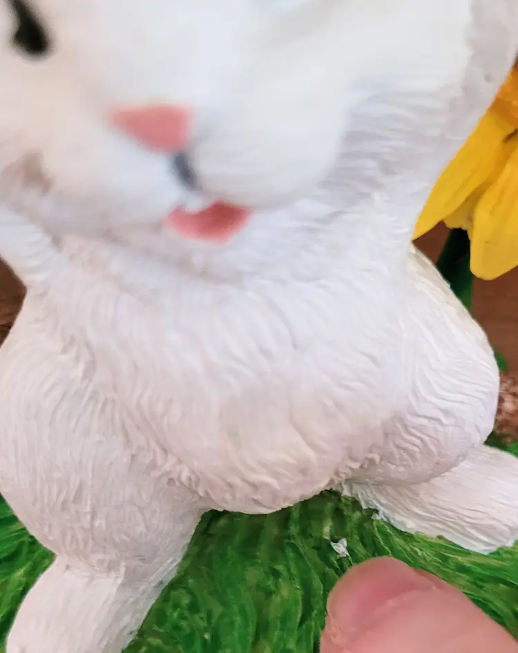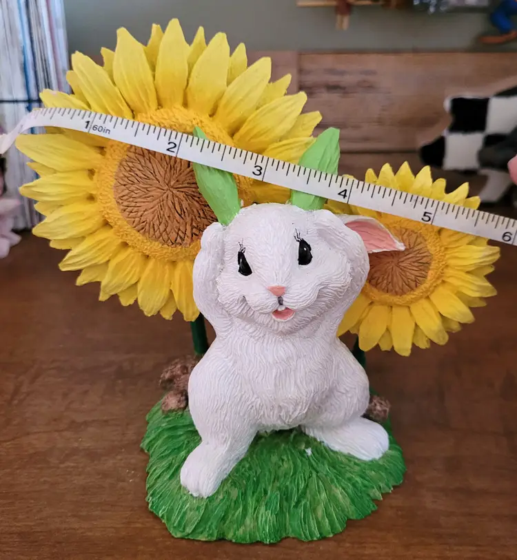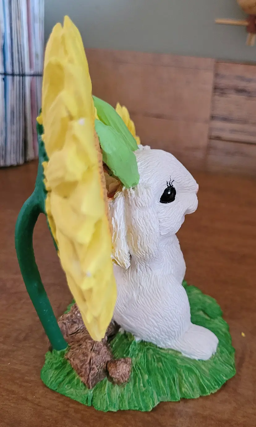 Michaels Stores Inc. Bunnyville Gardens U.S.A. Made in China. As-Is: a very tiny paint flick in the grass beyween the bunny's legs. . No real chips or cracks, and from a smoke free home. Please refer to the pictures for its condition and size. Approx: 6x5.5x3.5