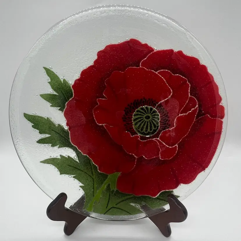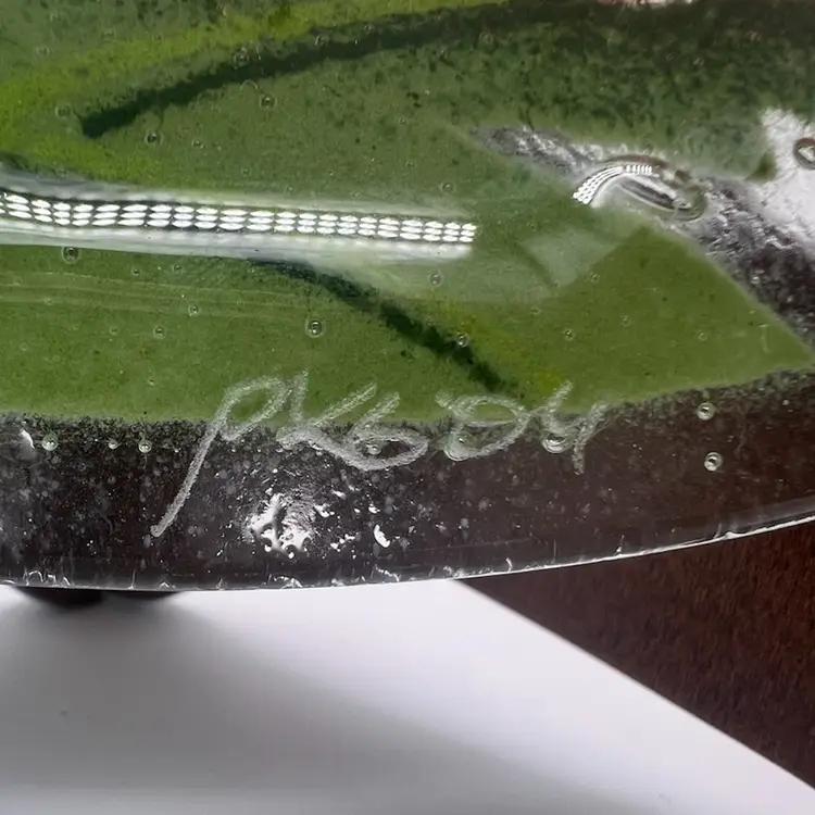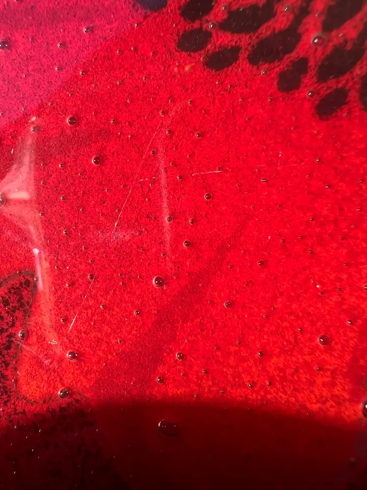 Displays beautifully, but has been used. There is some surface scratching as pictured. No chips or cracks. Diameter measures about 11 1/4”.