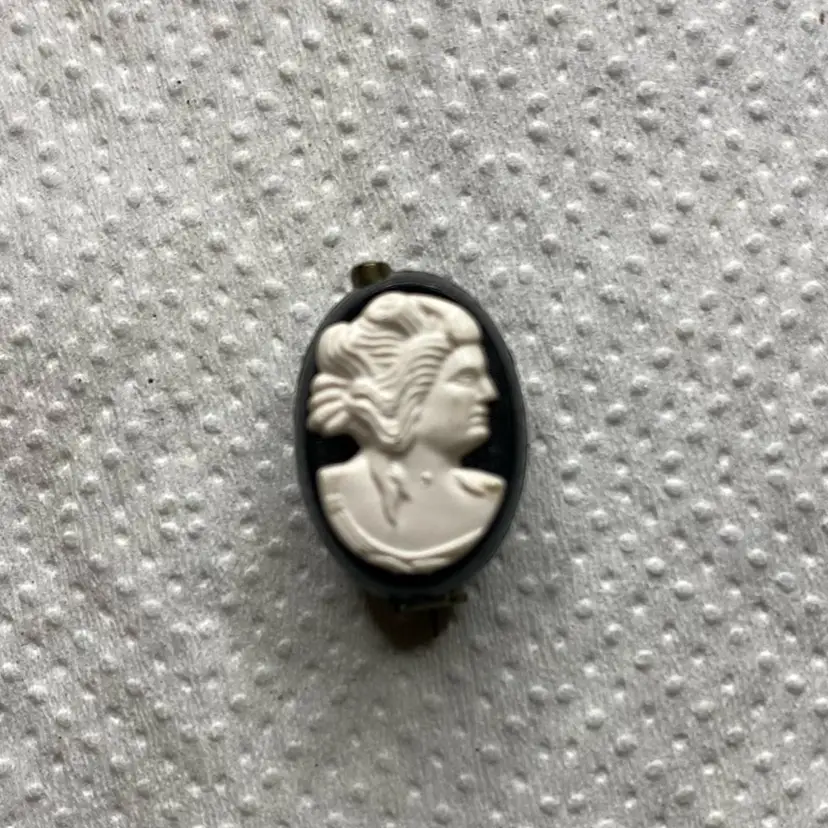 Vintage 1” Beautiful Cameo Pin Brooch Ivory & Black Small Silhouette