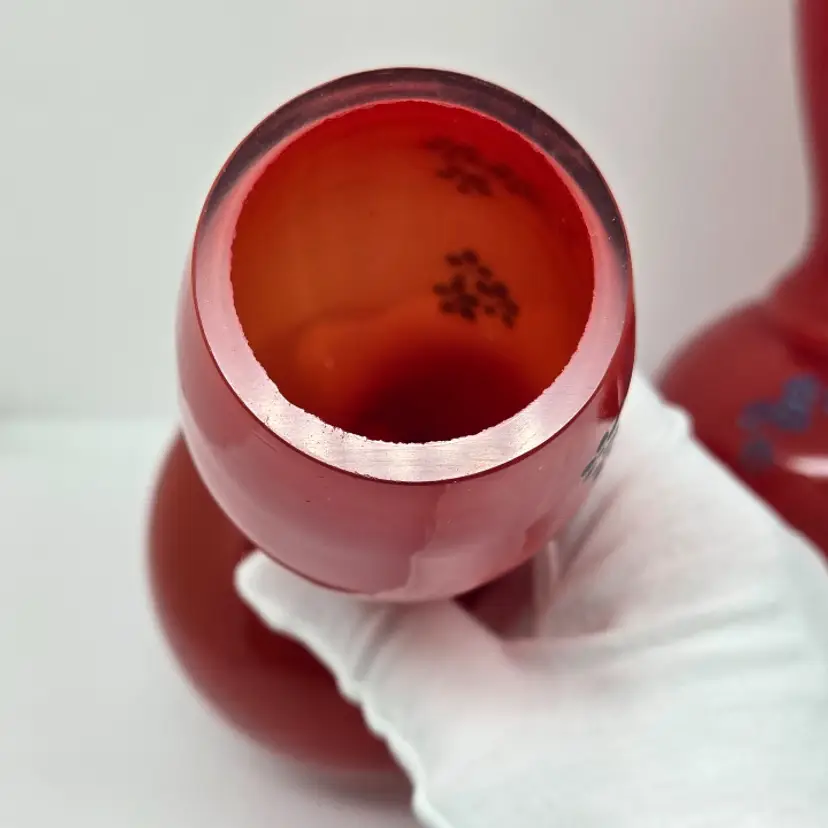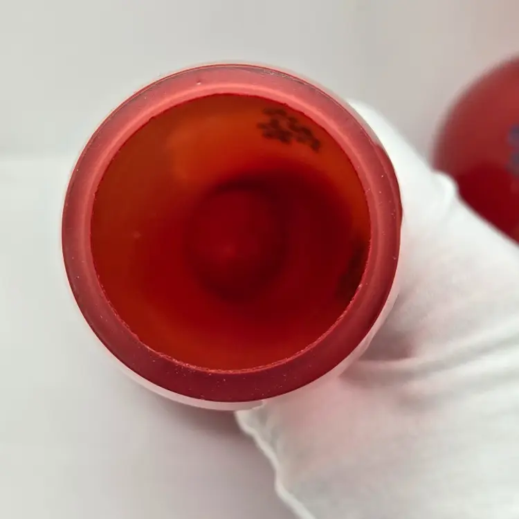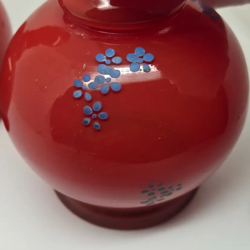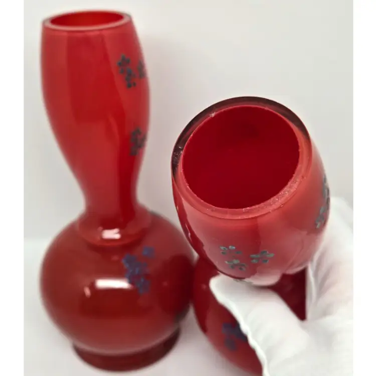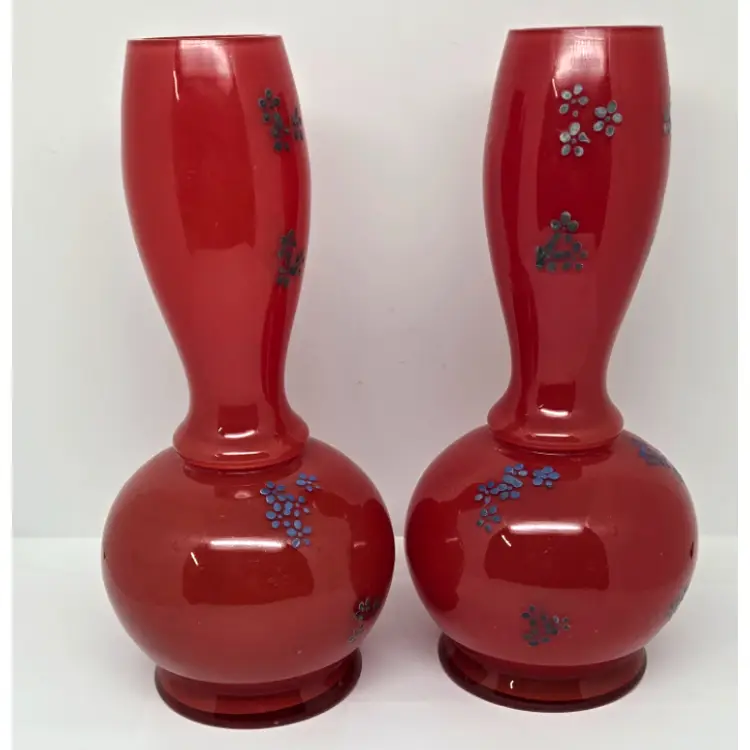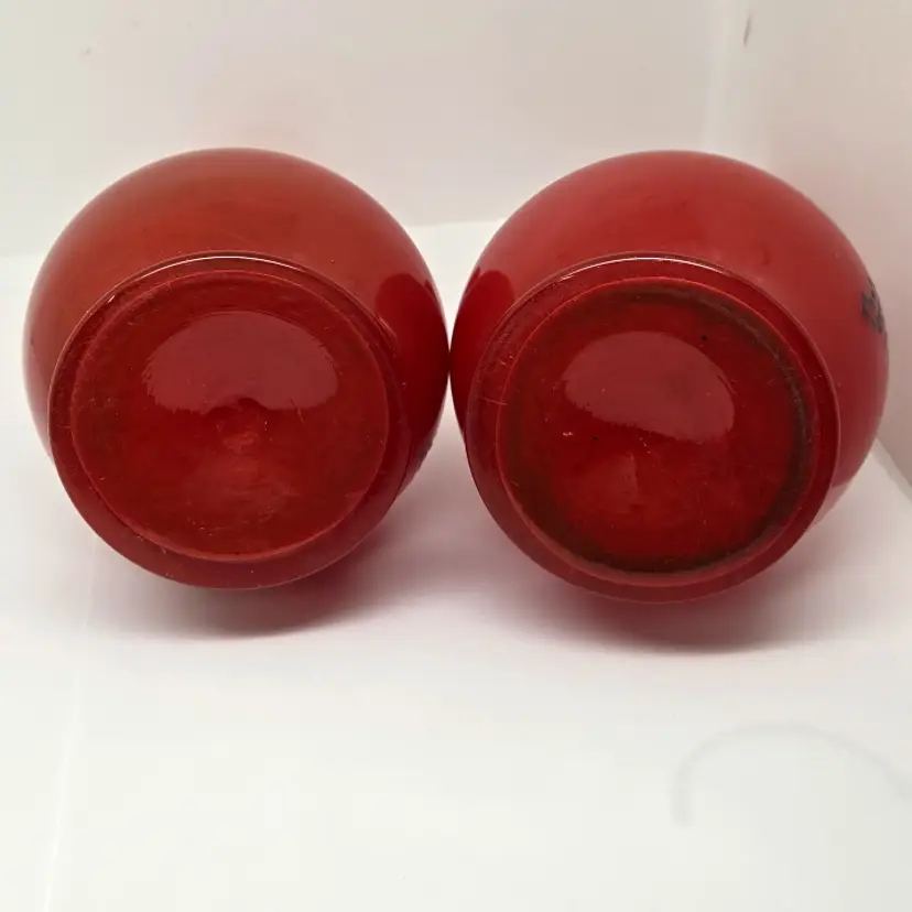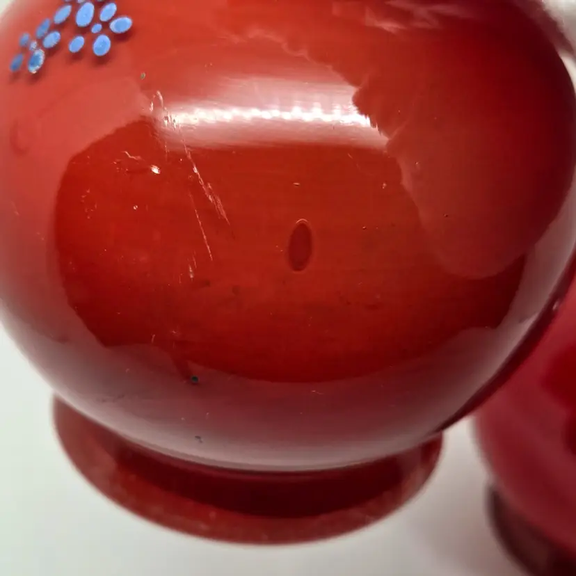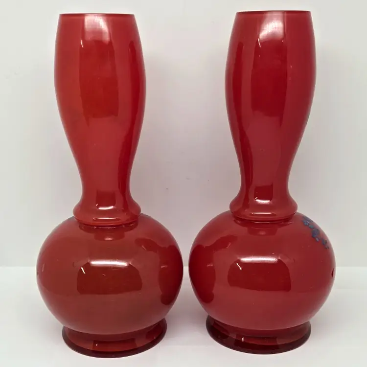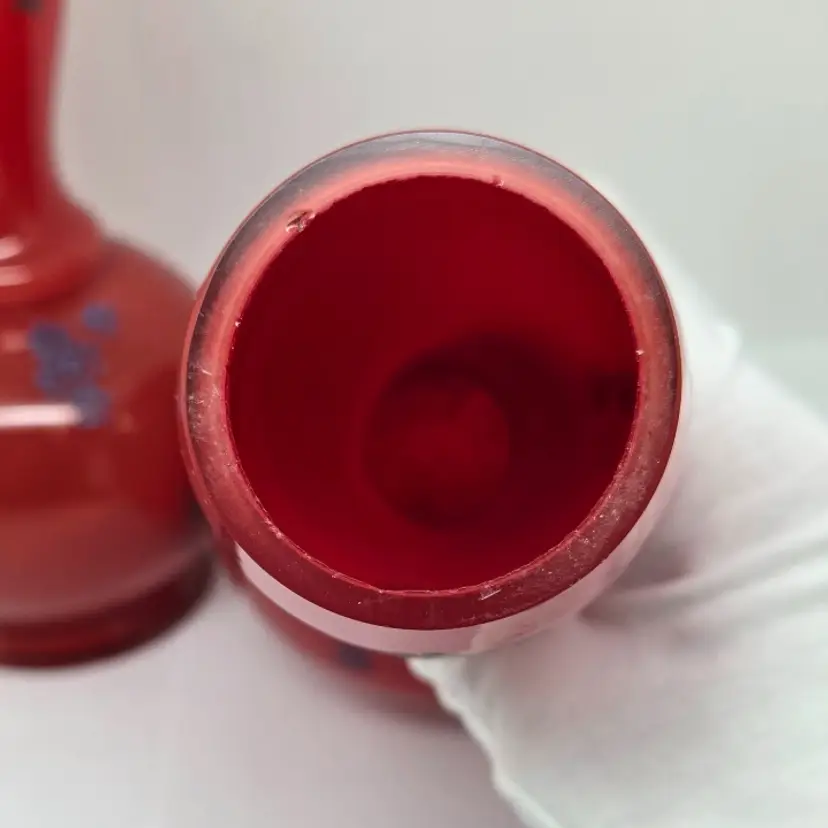 There are no cracks but there is minor chipping around the rim of each vase. Both vases do have air bubbles and minor scuffing.