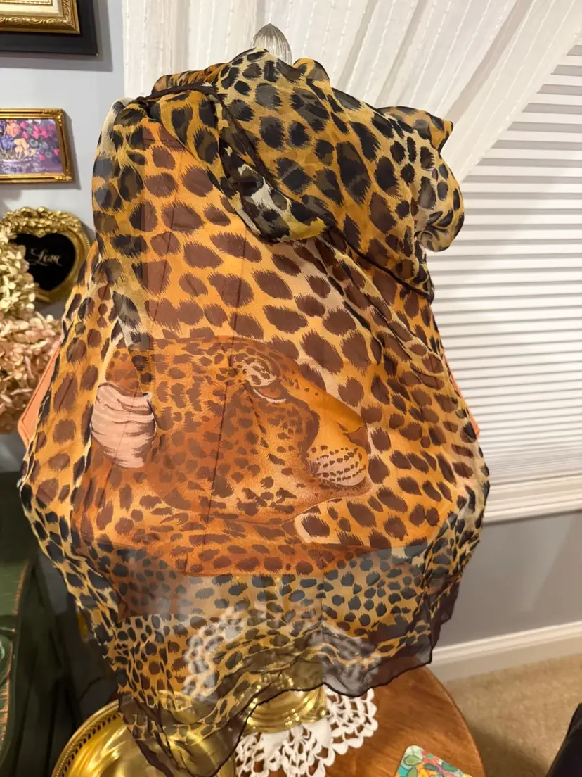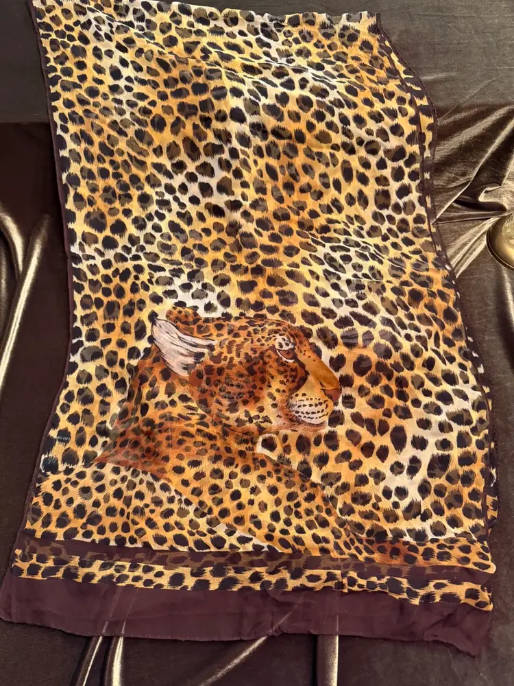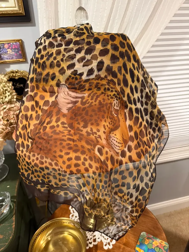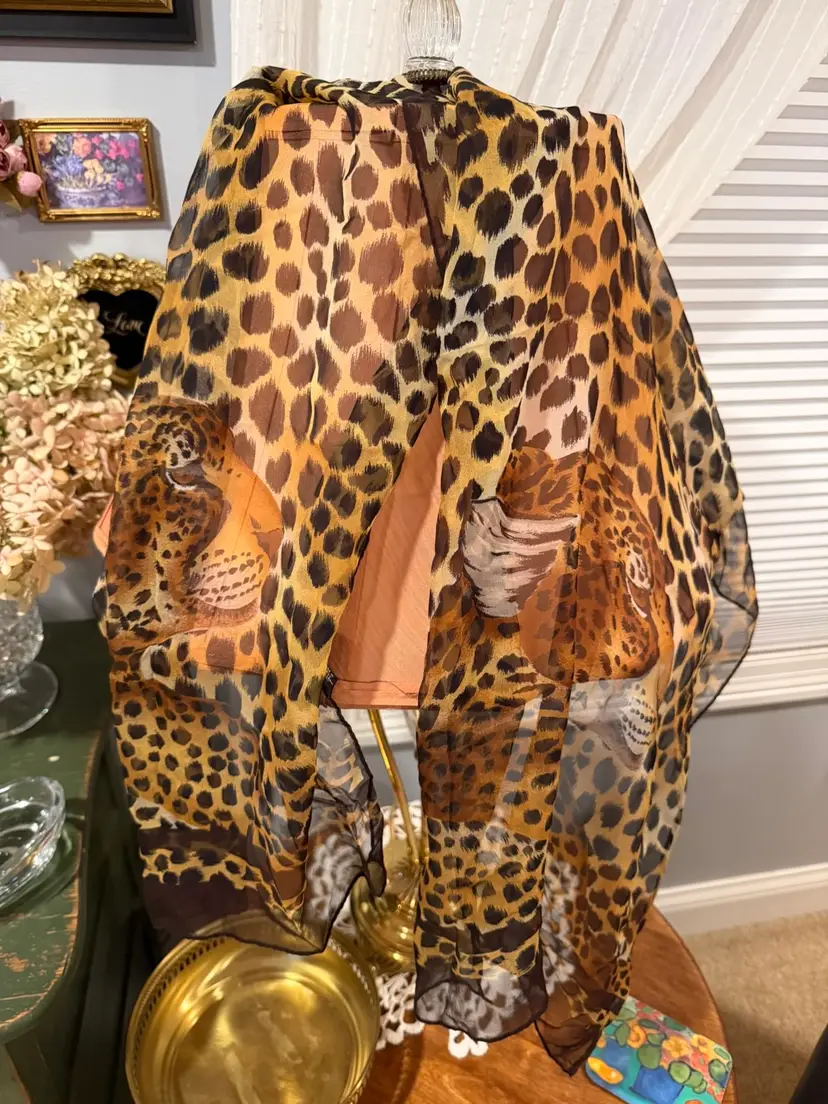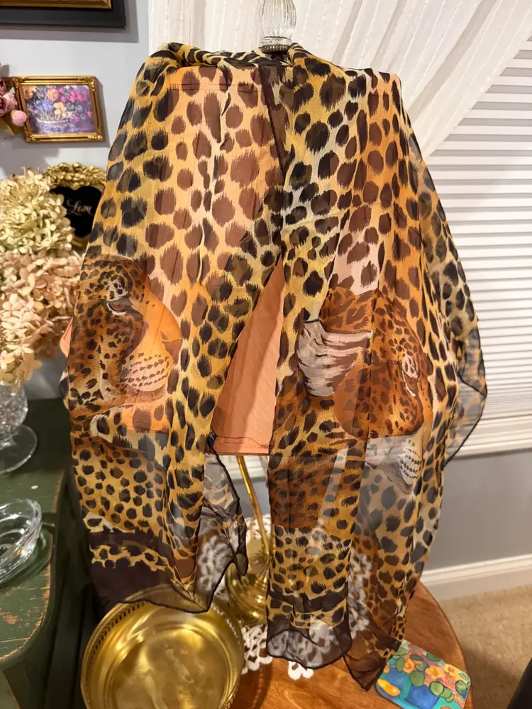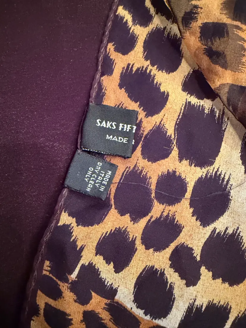 Vintage 100% Silk Scarf Made in Italy For Saks Fifth Avenue Leopard print ~64”x18”