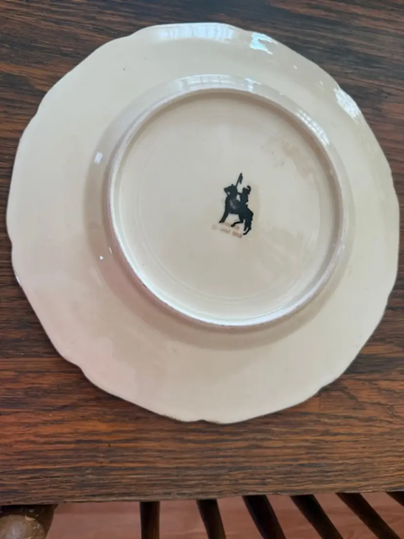 Markings: Knight on horseback backstamp, “Guaranteed 22 Carat Gold”