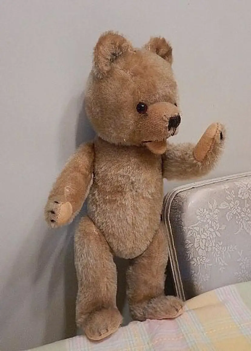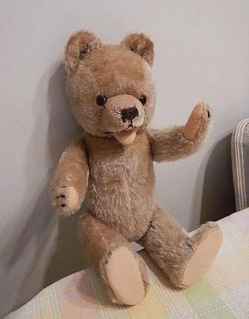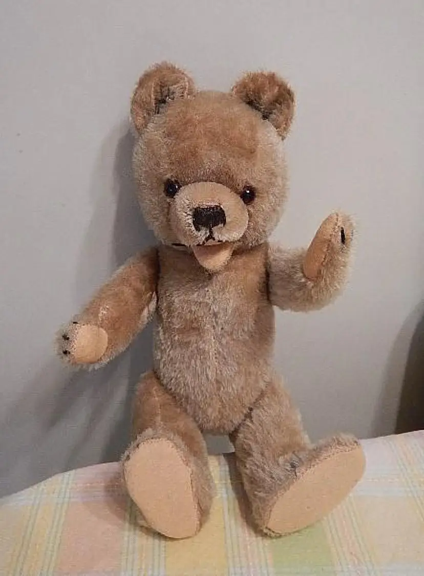 Vintage 12" Teddy Bear Open Mouth Mohair Jointed with Squeaker in Belly