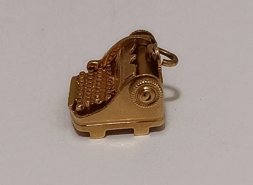 Sweet Little Miniature Vintage 14 K Yellow Gold Moveable Typewriter Charm/Pendant; the return lever moves up and down and the paper carriage rolls. Adorable!
