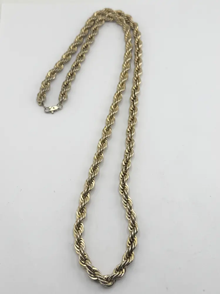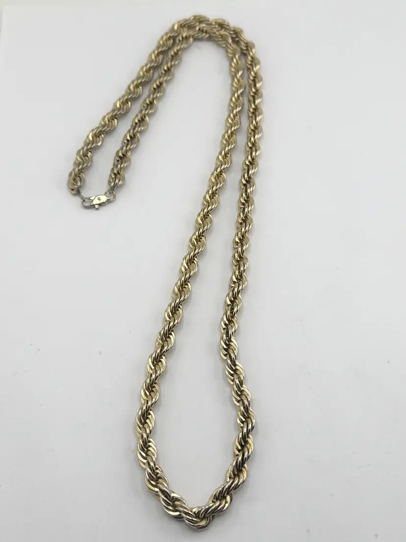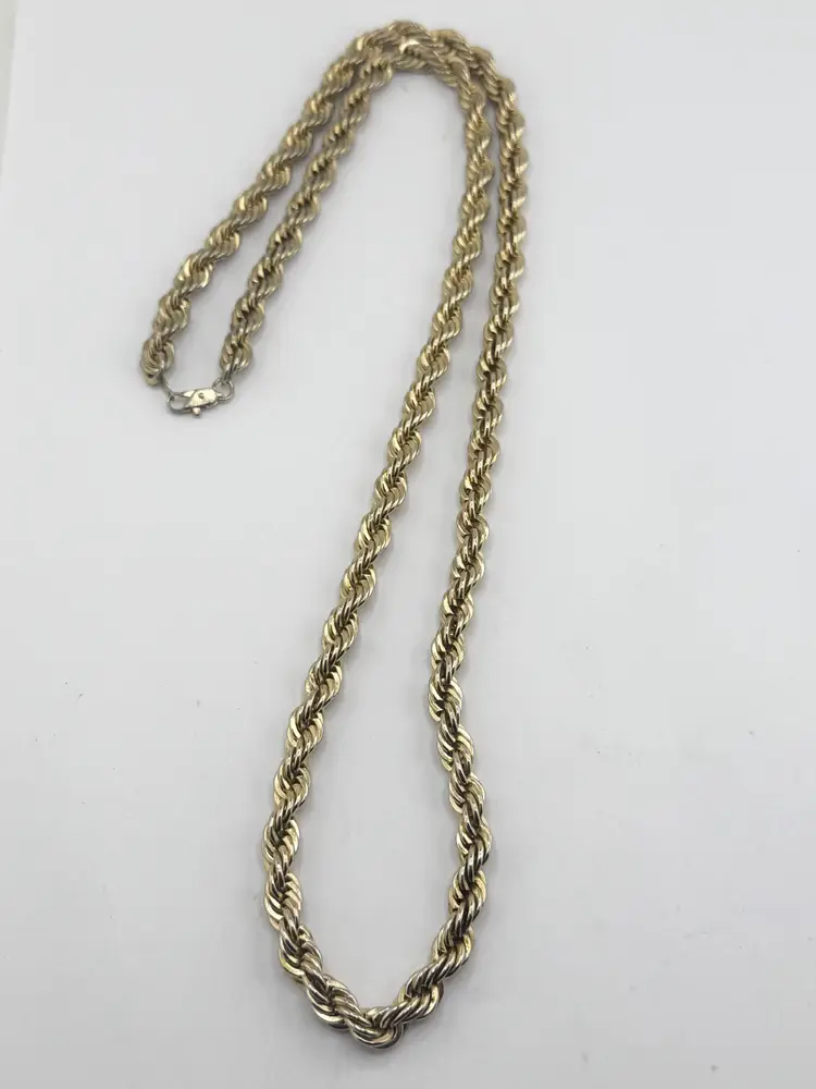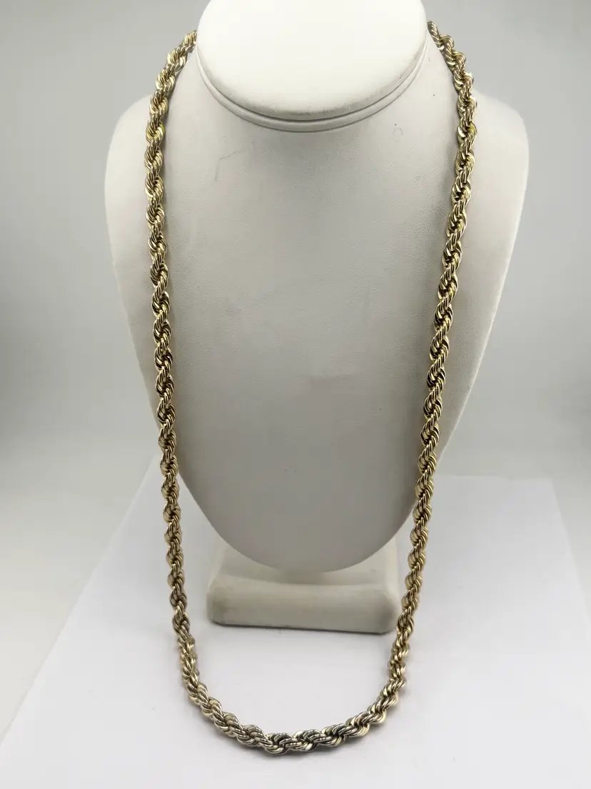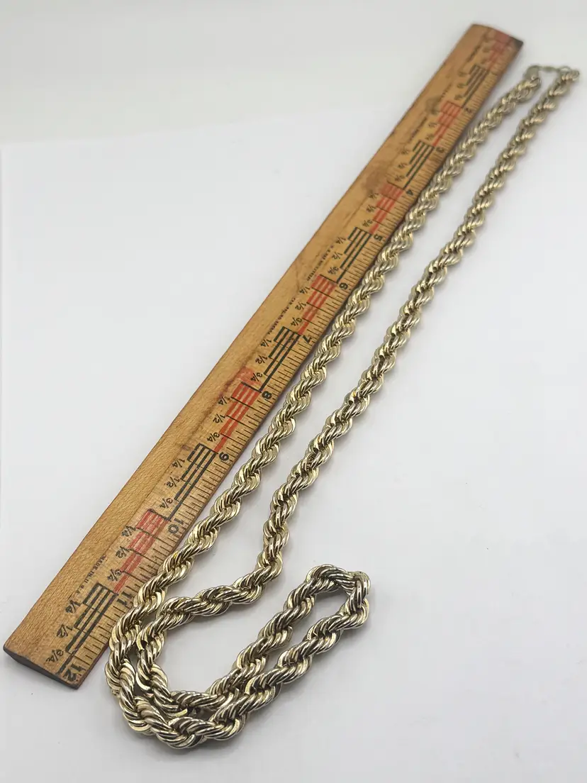 Vintage 14k Gold Plated braided gold tone long chain necklace. Signed 14k GP. Heavy, well-made, gold tone, braided chain, long vintage necklace. MN52GHJ.