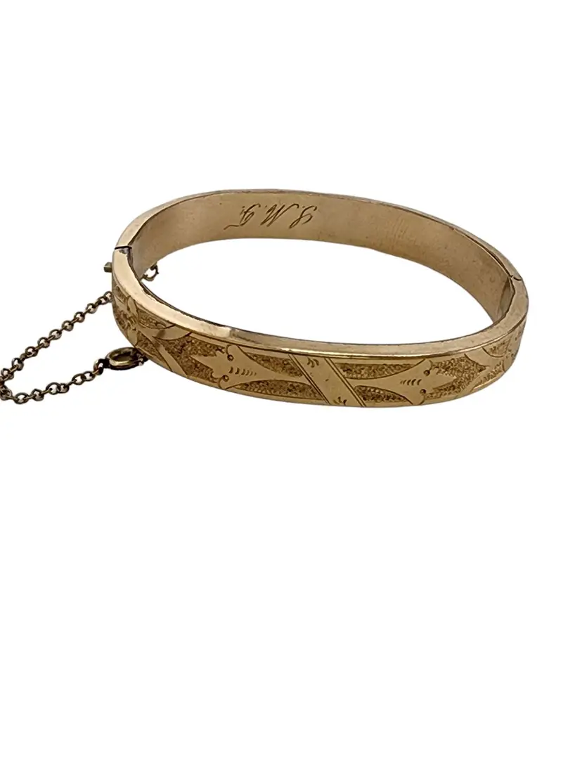 Vintage 14kt Engraved S.M.F. Childs Bangle Bracelet (A5266)