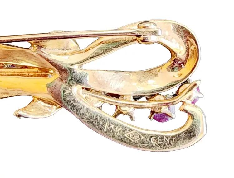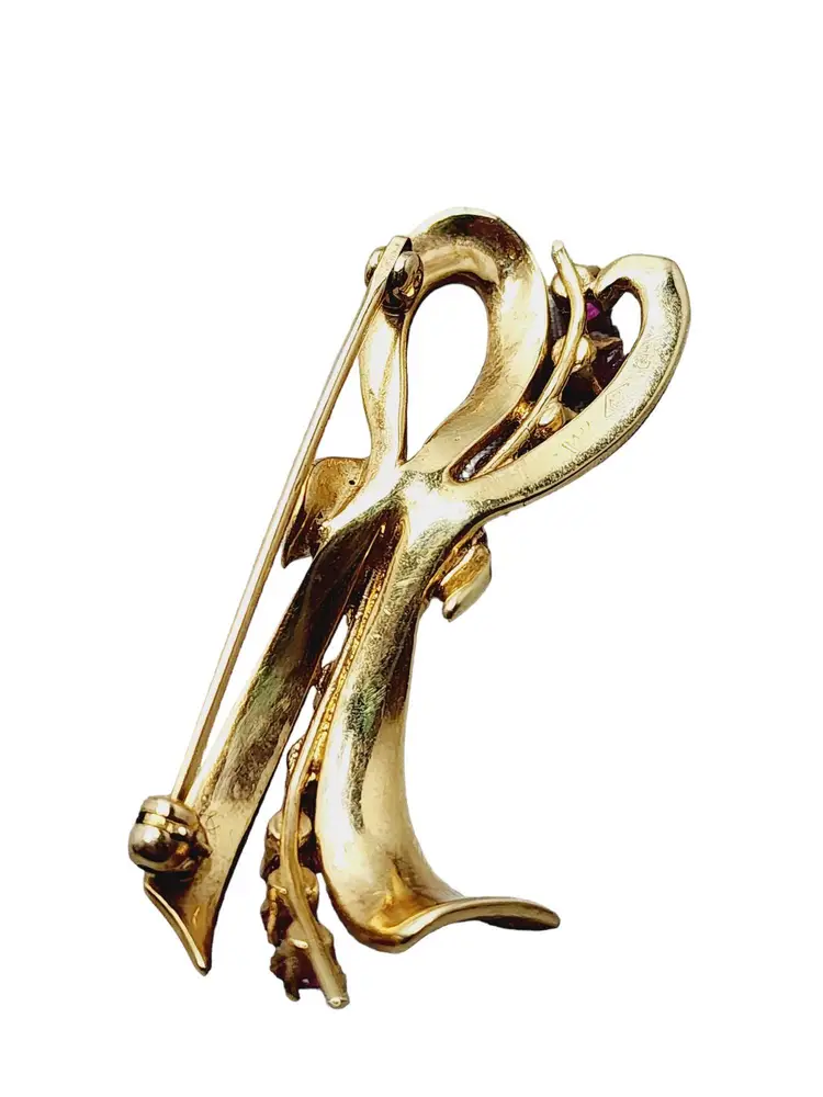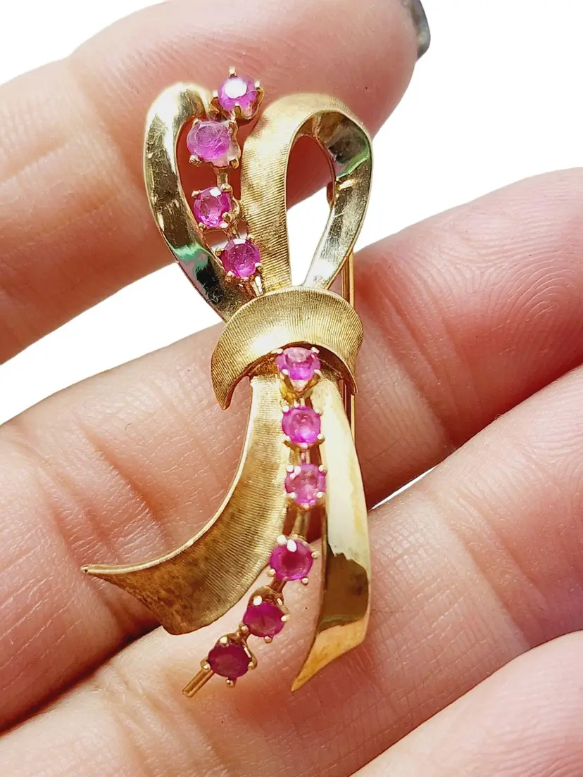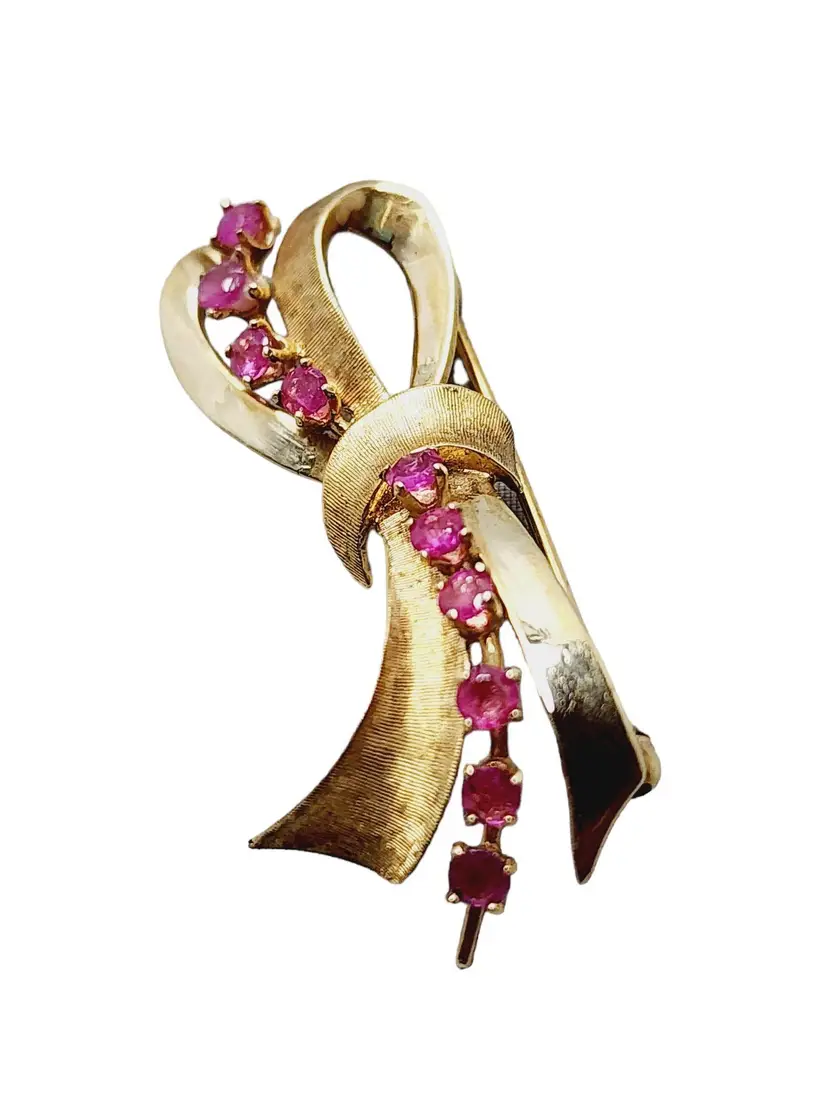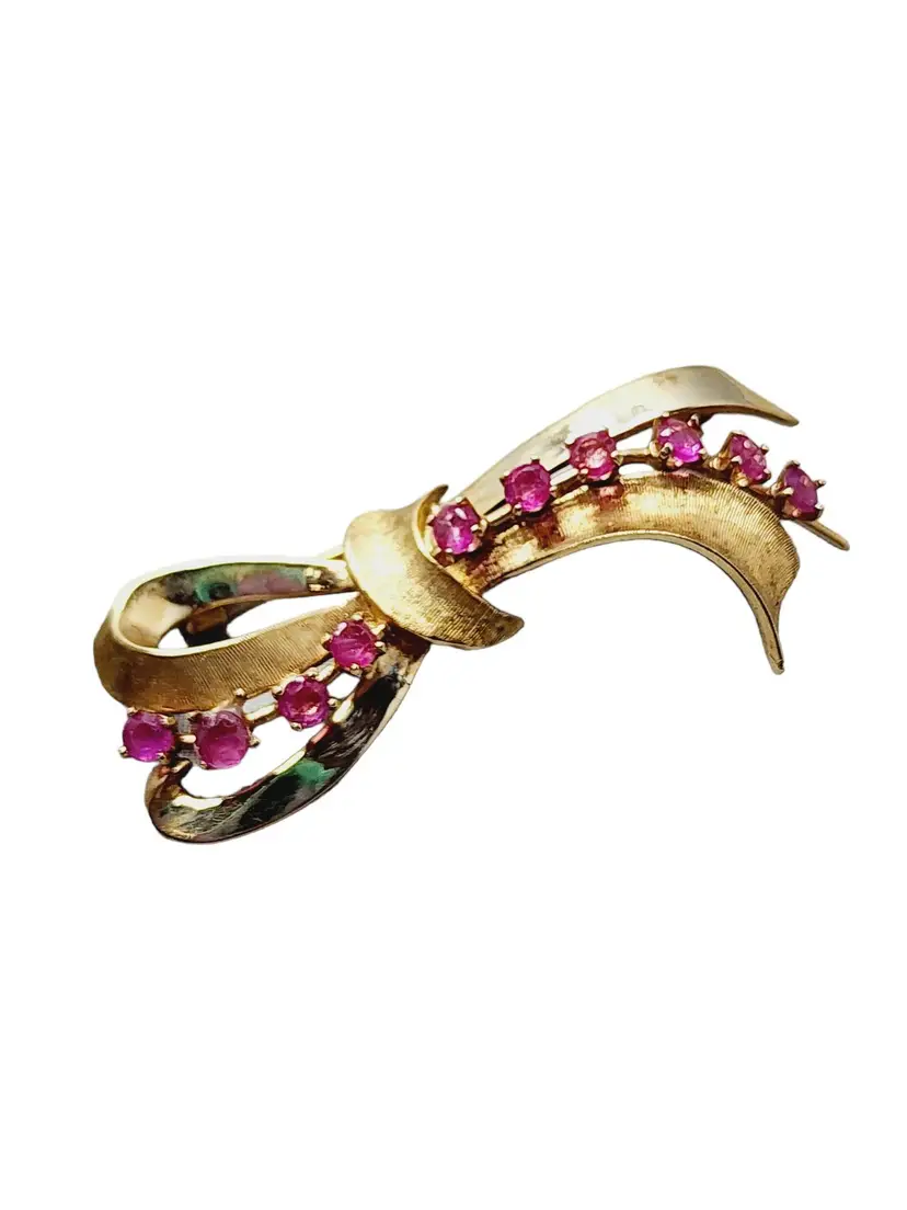 Vintage 14kt Gold & Ruby Bow Brooch (A1642)