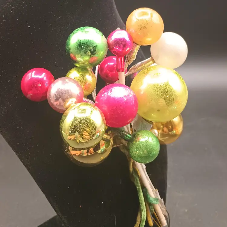 Note: The white ball, & two of the gold balls appear to be of a different material perhaps vintage plastic?