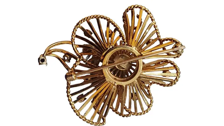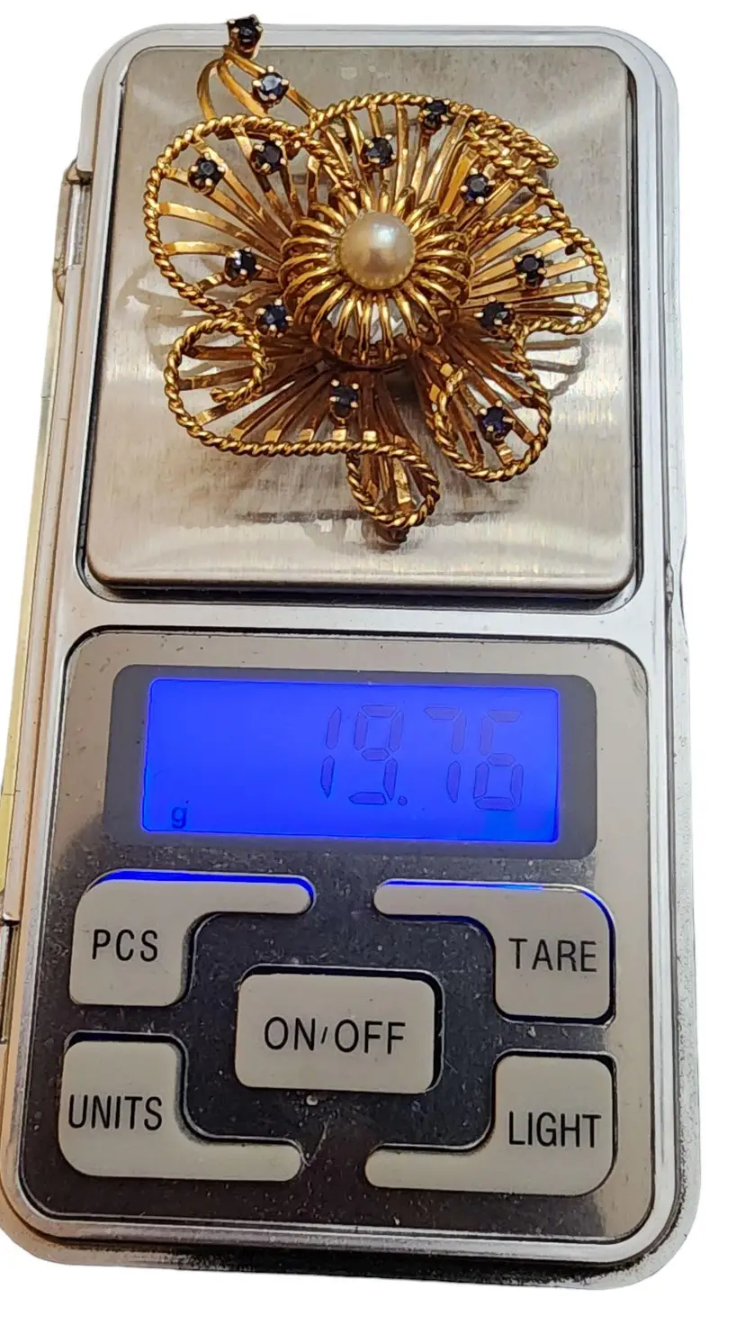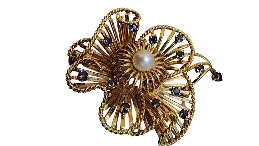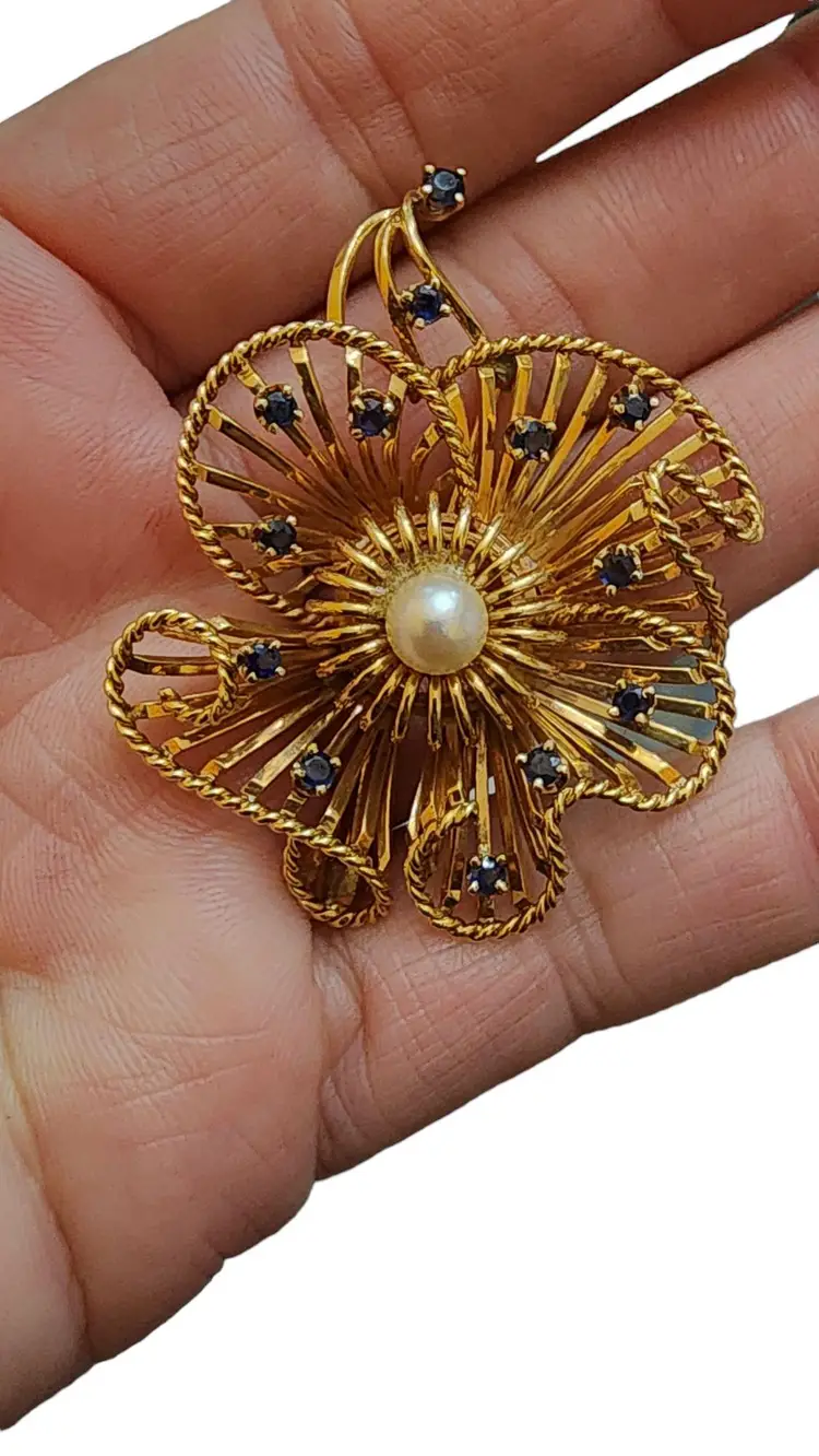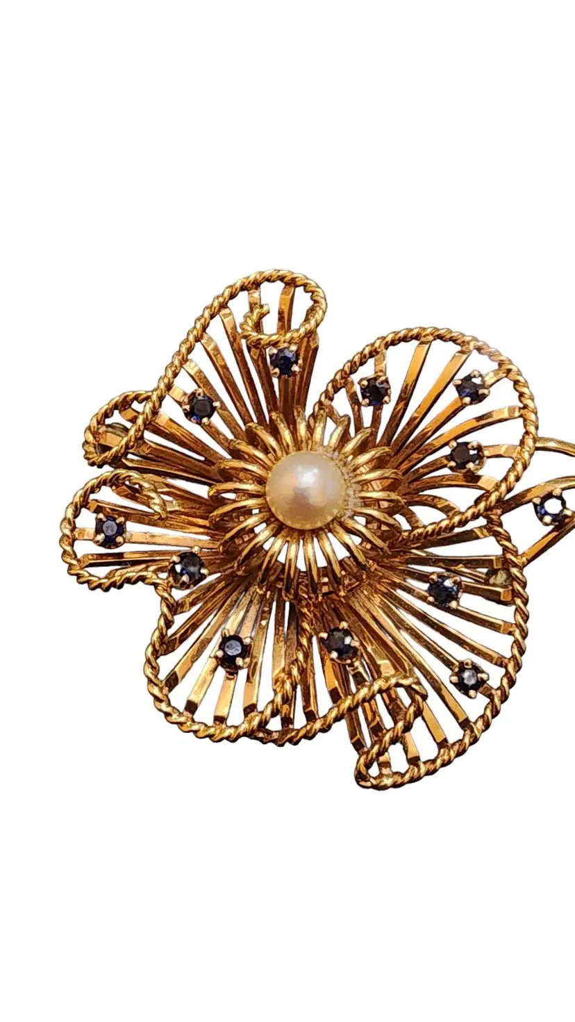 Vintage 18kt Gold Sapphire & Pearl Dimensional Brooch (A2560)