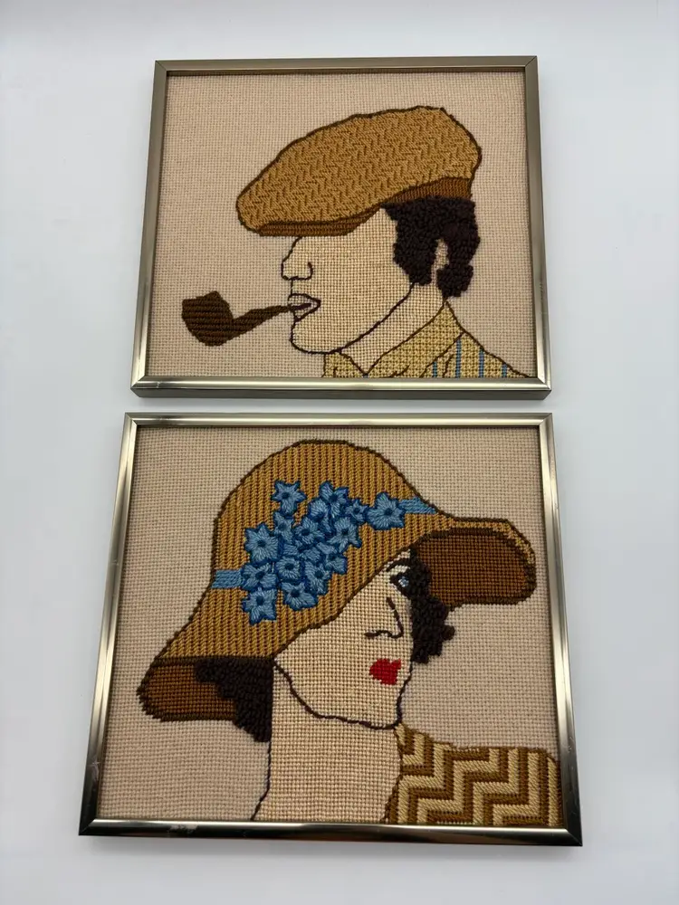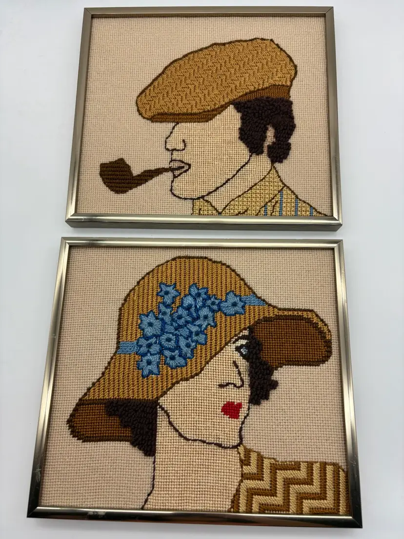 Vintage 1920’s Art Deco Needlepoint Framed Art Pieces