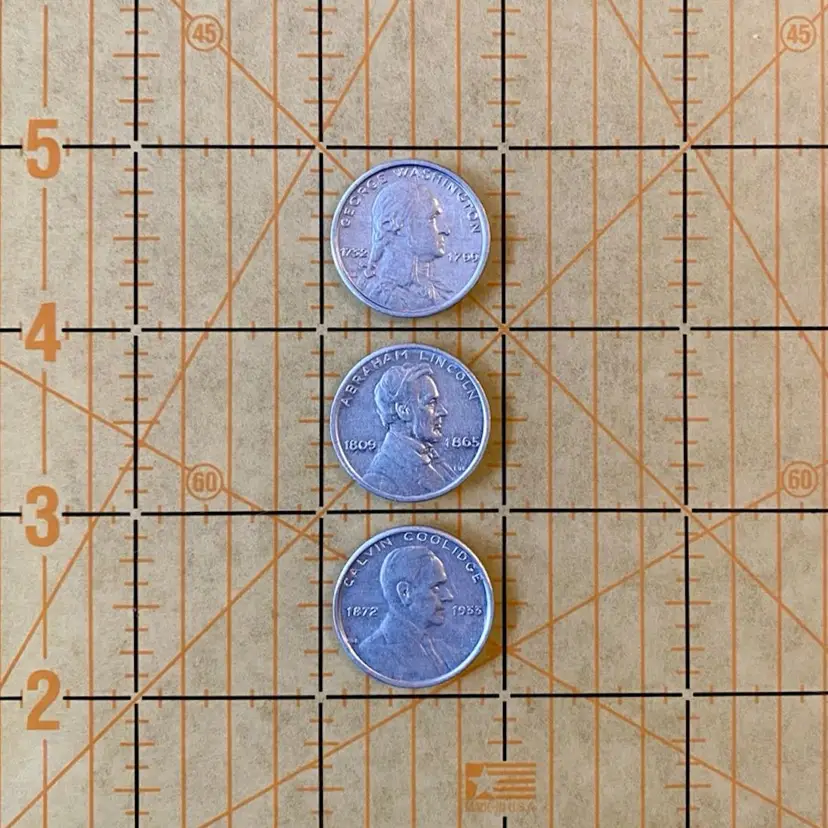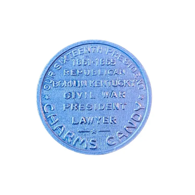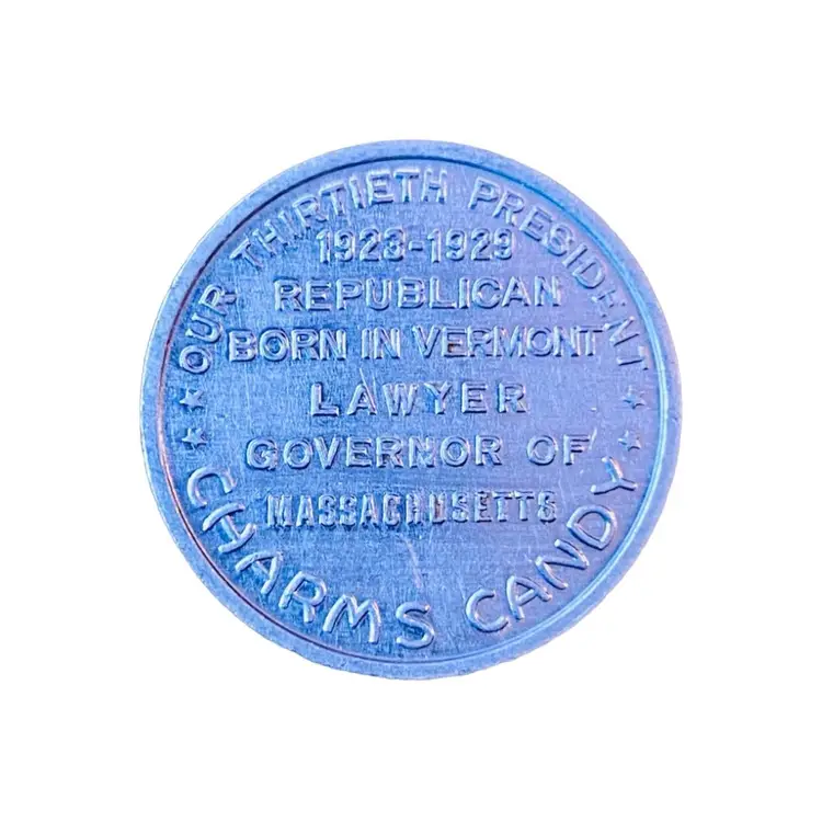 This lot includes three Charms Candy Premium Collectible Coin Tokens: George Washington, Abraham Lincoln and Calvin Coolidge. Coins are made of aluminum and measure 7/8” in diameter.