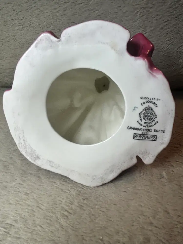 This is a Royal Worcester "Grandmother's Dress" figurine, model number 3081. Made in England