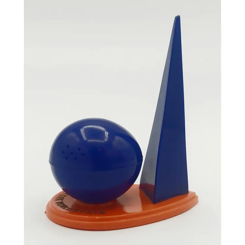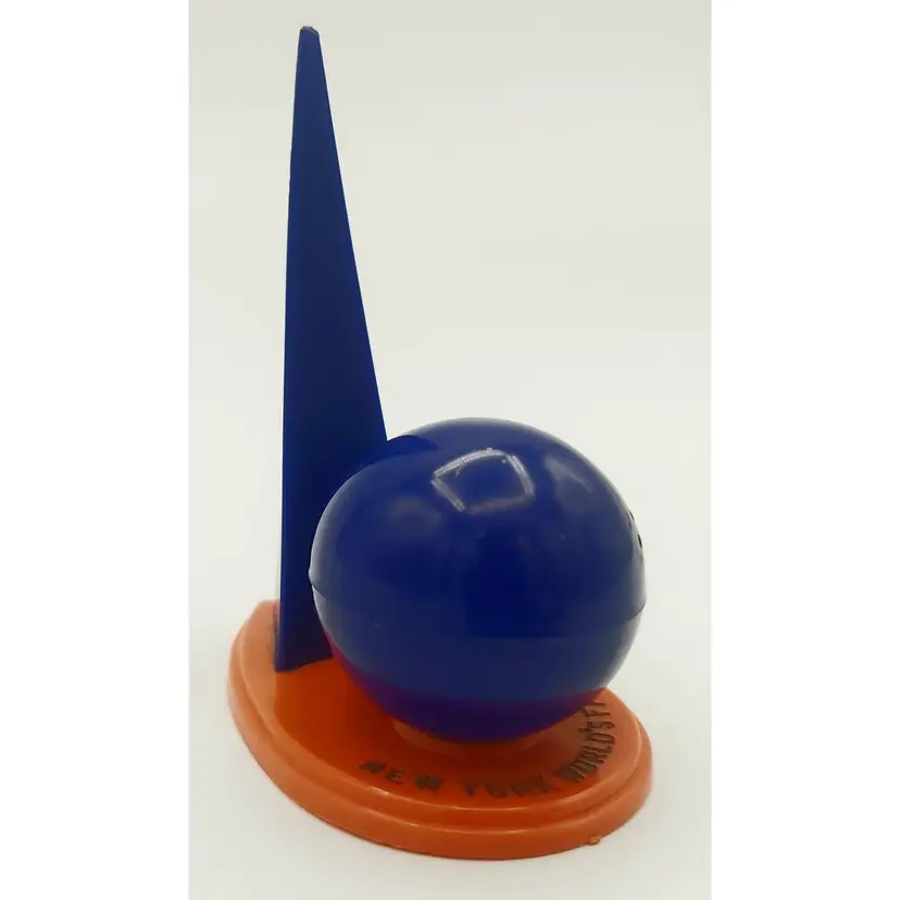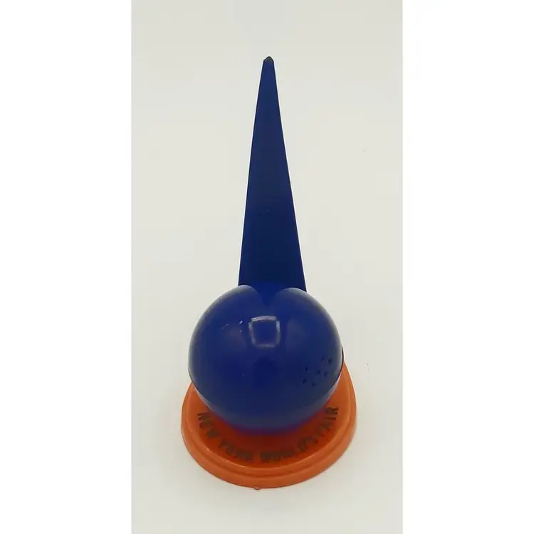 Iconic 1939 New York World' Fair Trylon & Perisphere All In One Blue & Orange Salt & Pepper Shakers. No cracks or chips, few scratches. Lettering on base is great. See pictures for details. Measures 3 1/2" high x 3" long x 2" wide.