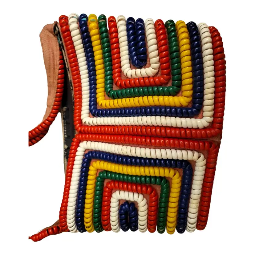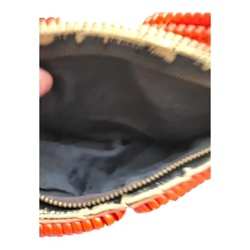 Please view photos carefully . The inside is very clean, no odors. The handle could use a stitch or two on one side where there is material showing, as shown in the photos. Bag measures 7" wide by 5" high and has a depth of 2'. The strap drop is 6". There is cardboard showing along the zipper, as shown in the photos.