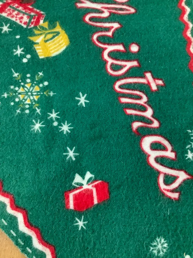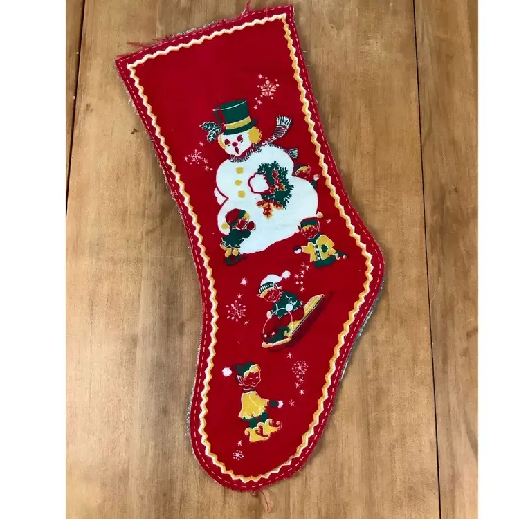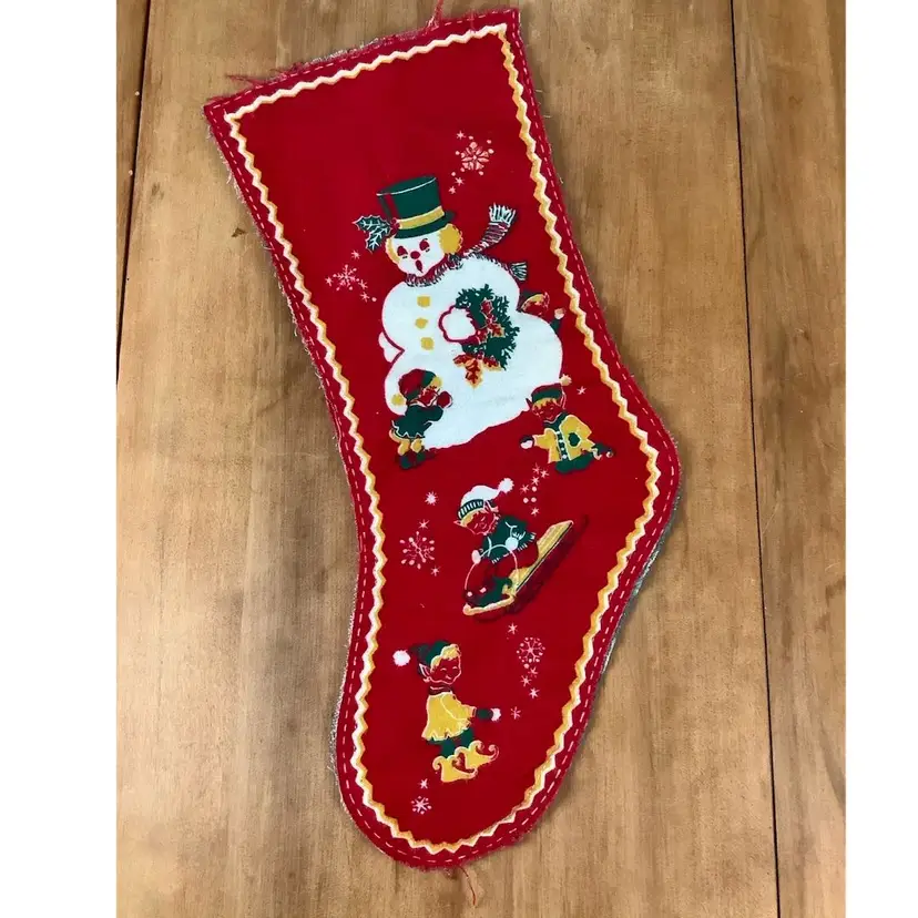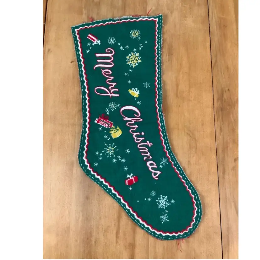 Vintage reversible felt stocking that is unfinished. About 17”x6”. In very good condition. Possible stain on green side.