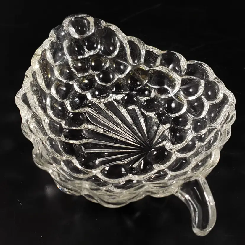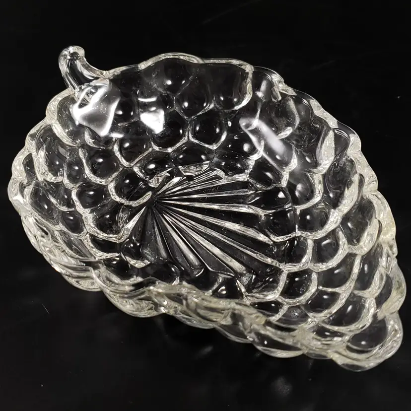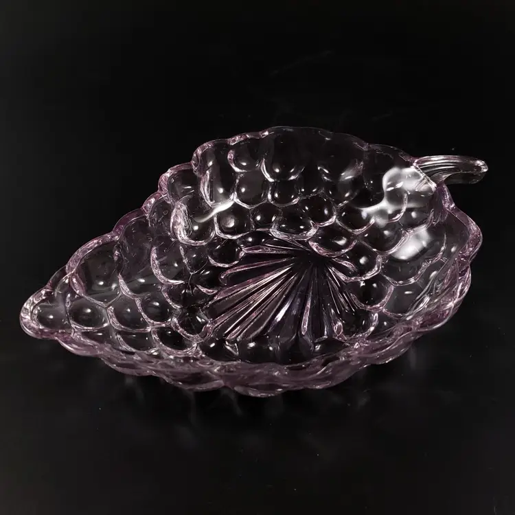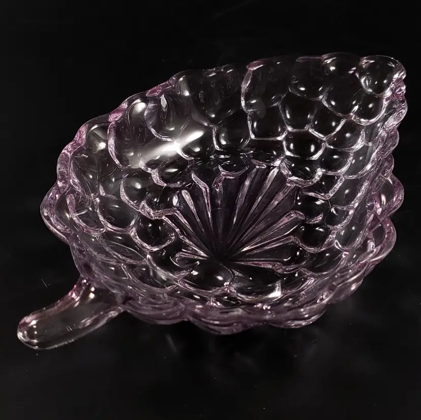 • Set includes the 3 dishes as shown in photos • Anchor Hocking • Pressed glass • "Bubble", grape cluster pattern • Pink, purple & clear • Unmarked
