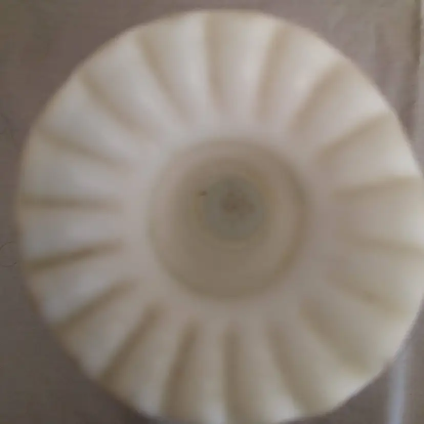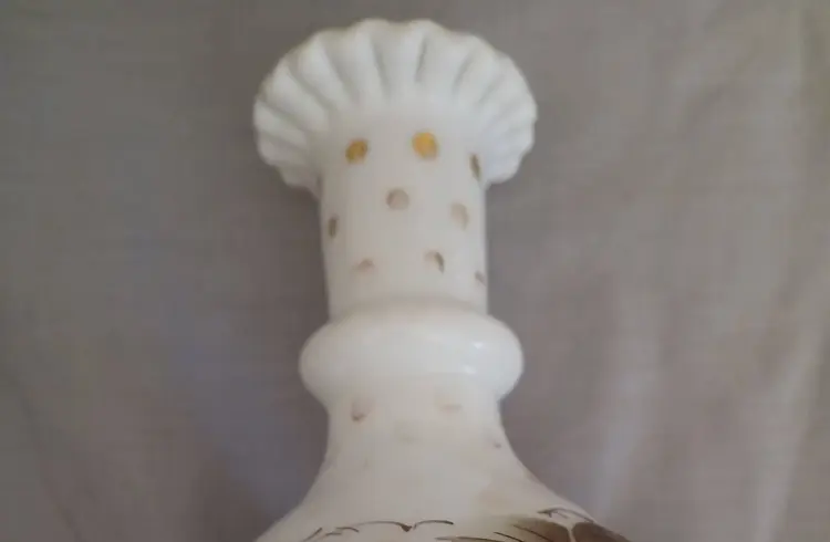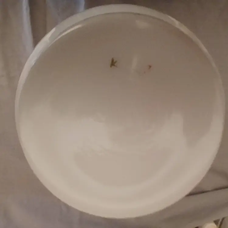 The apple and pear design is is great condition with very little if any wear. There are no chips or cracks on the ruffled top.