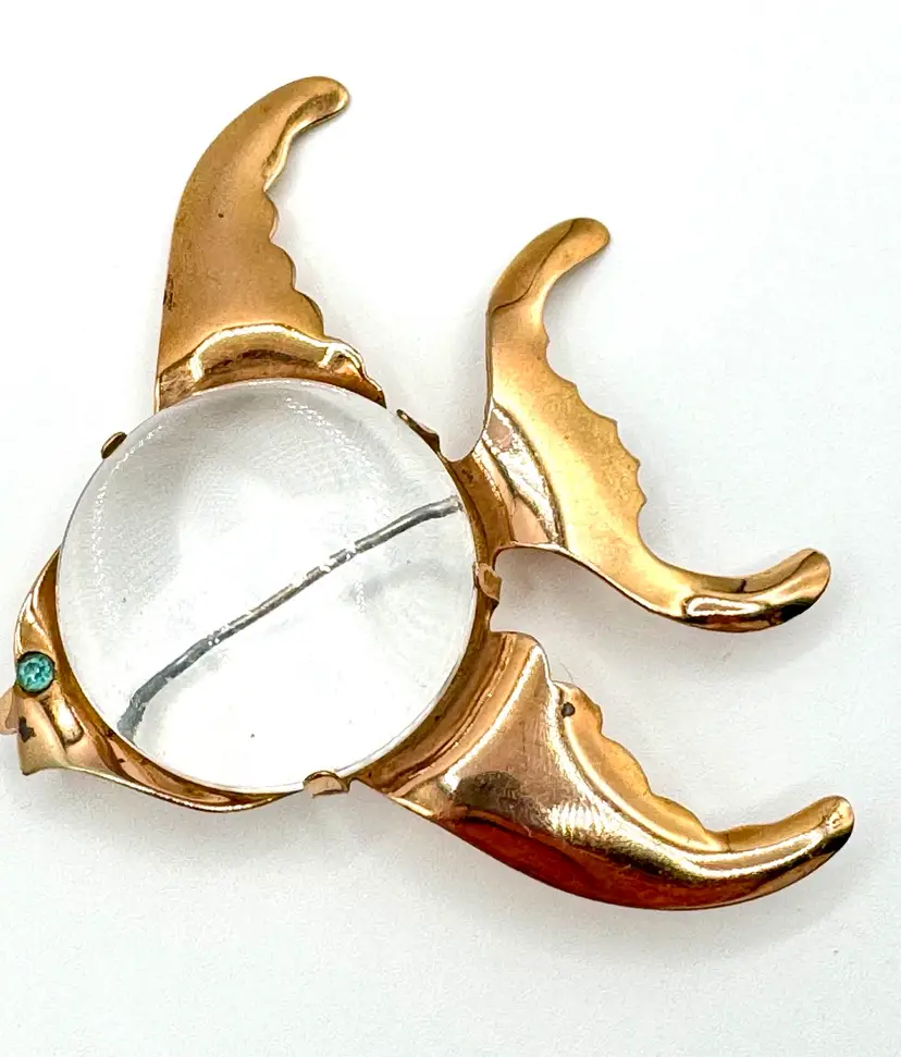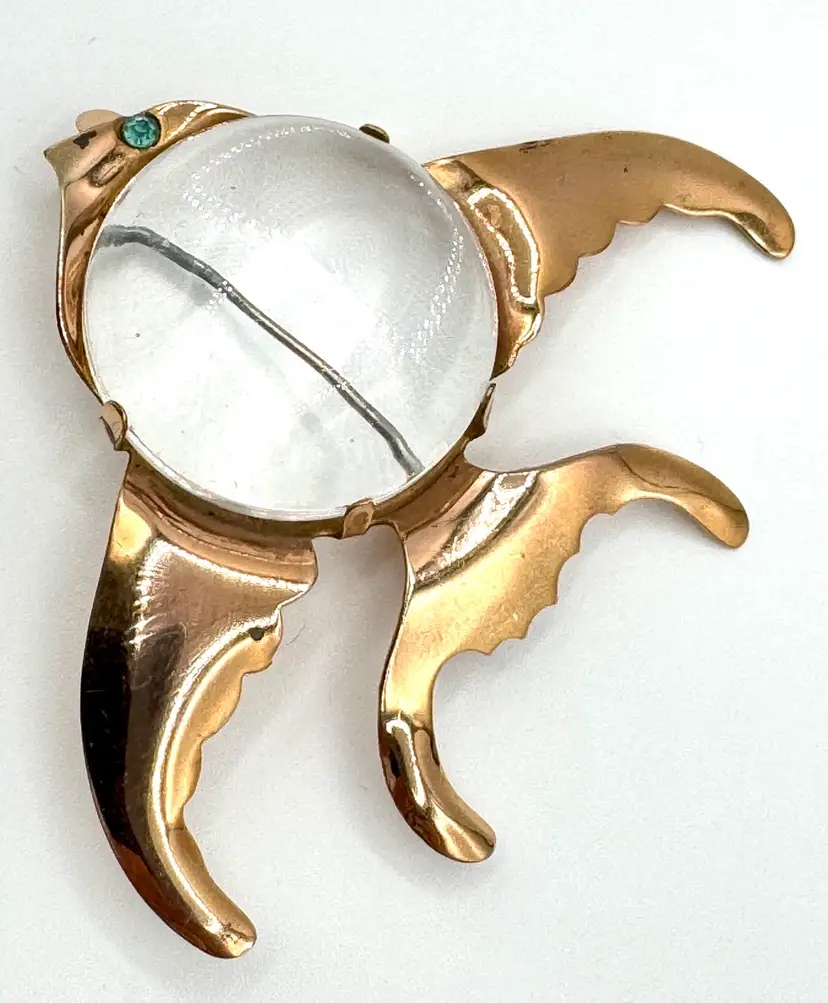 The fish-shaped brooch is in its original condition and has not been signed, making it a unique and one-of-a-kind item. It is perfect for vintage jewelry collectors and those who love to accessorize with unique pieces. The brooch is from the Retro era and is an original piece, making it a great addition to any vintage jewelry collection.