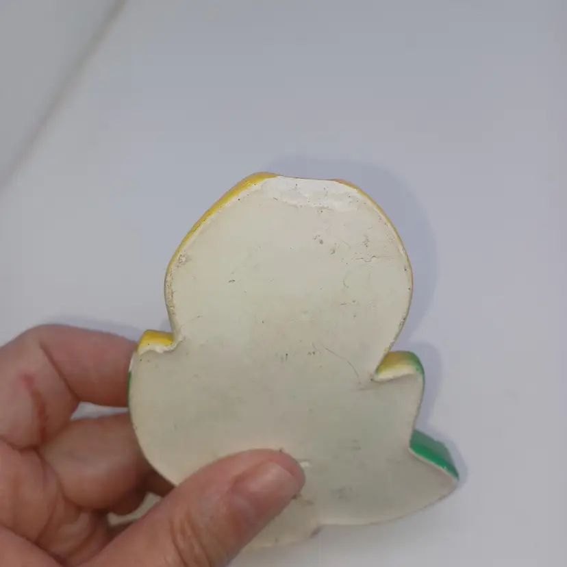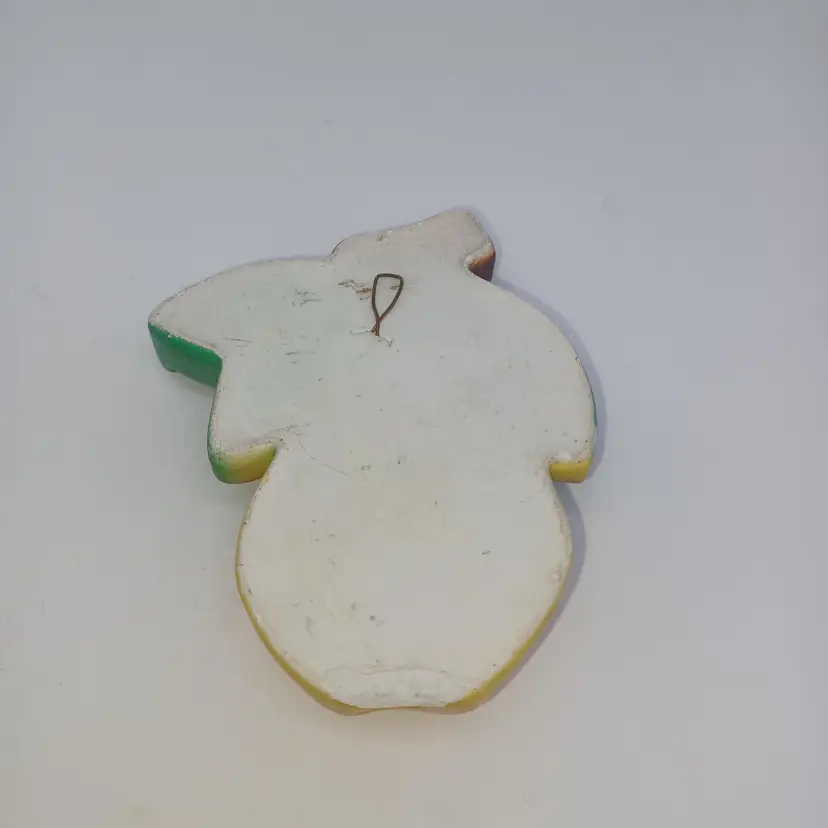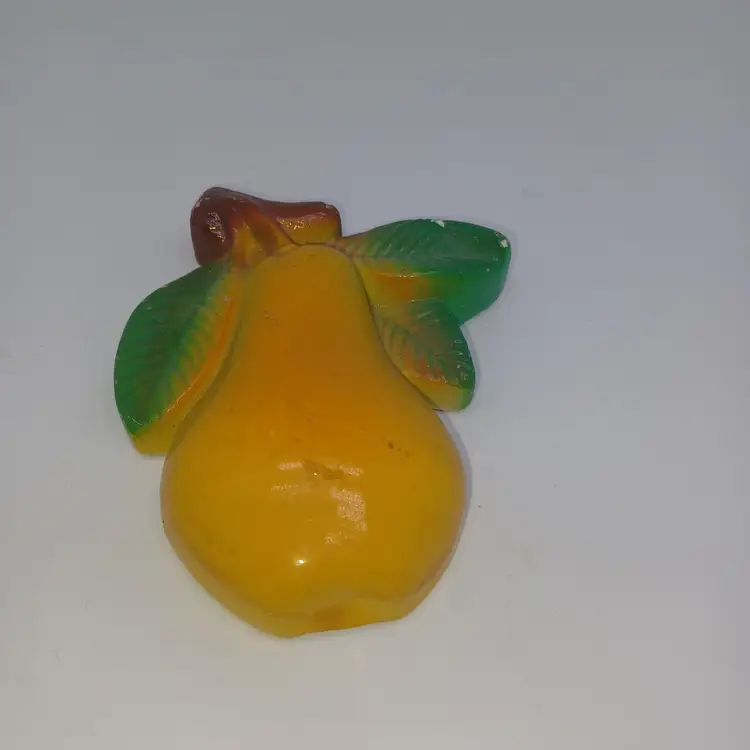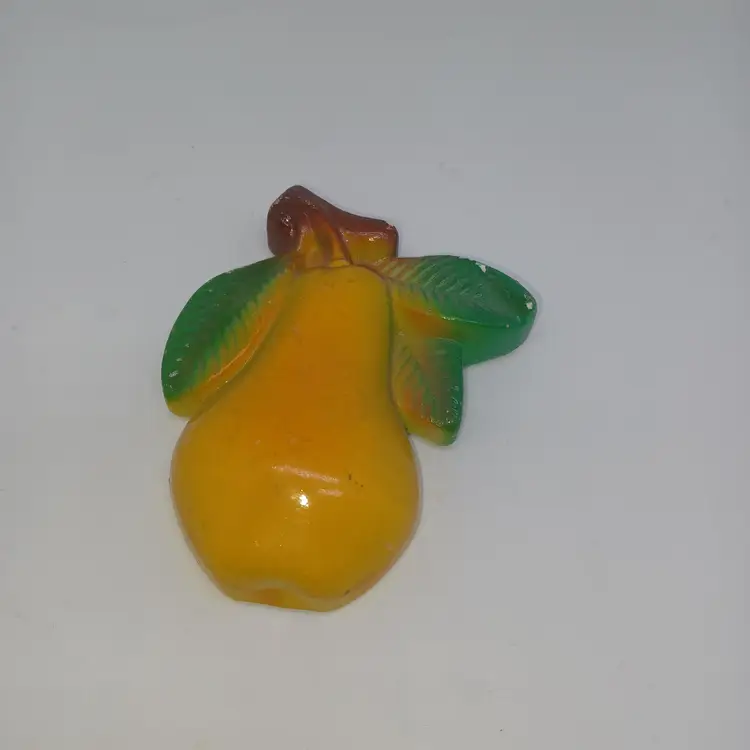 Vintage 1940s Pear Chalkware Wall Decoration 4 in In good vintage condition does have a slight chip off The back and a few little nicks to the paint but still displays great. Please see all pictures as they are the best description. All items from a smoke-free home with pets experienced fragile shipper