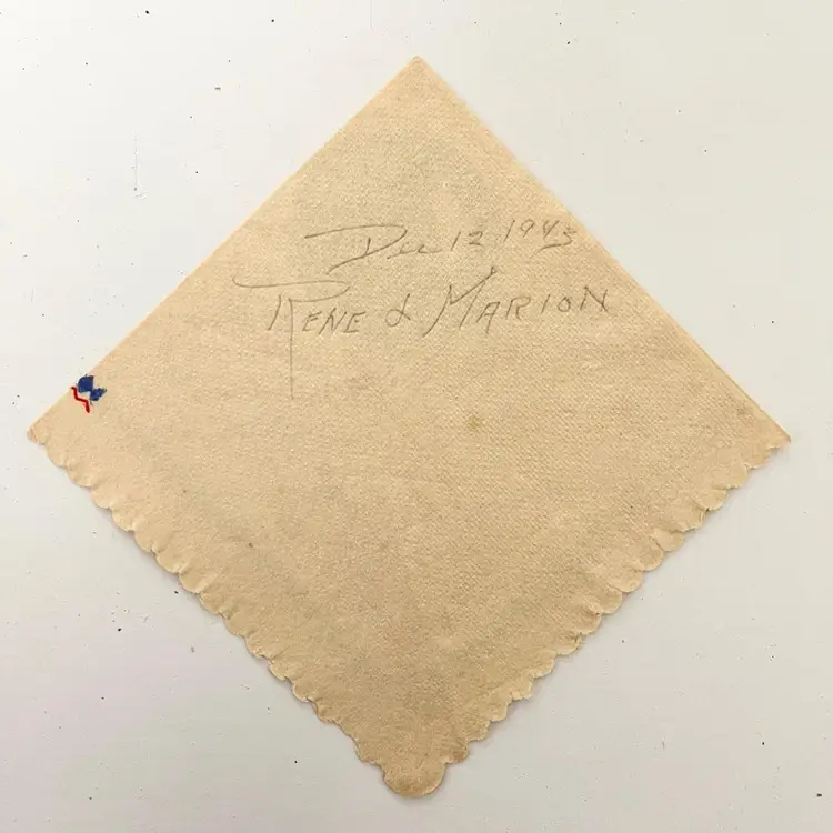 Pin Up Girl Cocktail Napkin Denver's Place Torrance California Night Club Lounge Vintage 1940s Condition: Creases, spots. The paper is toned, discolored. Handwritten penciled note on the back side "December 12, 1943 Rene & Marion" Measures 4-1/2 inches x 4-1/2 inches Packaged in a plastic sleeve inside a rigid envelope Visit my store to see more vintage ephemera, advertising, novelties, gifts, estate sale and yard sale finds https://district.net/u/finderspickerspaper SKU B30