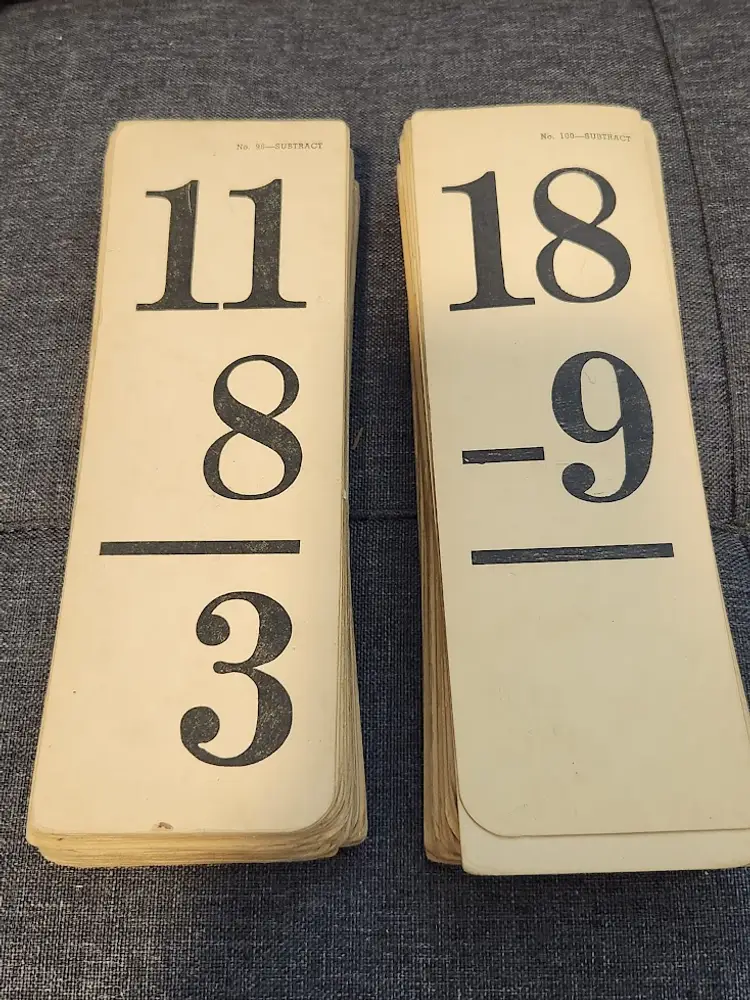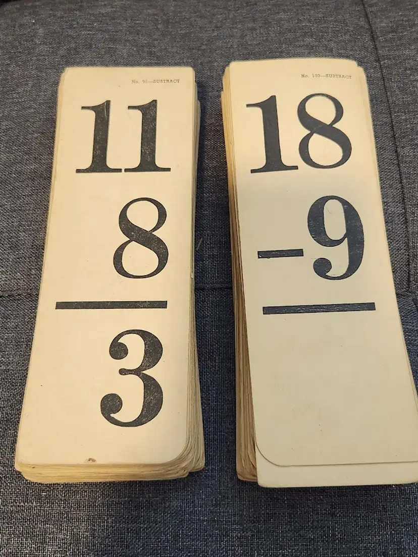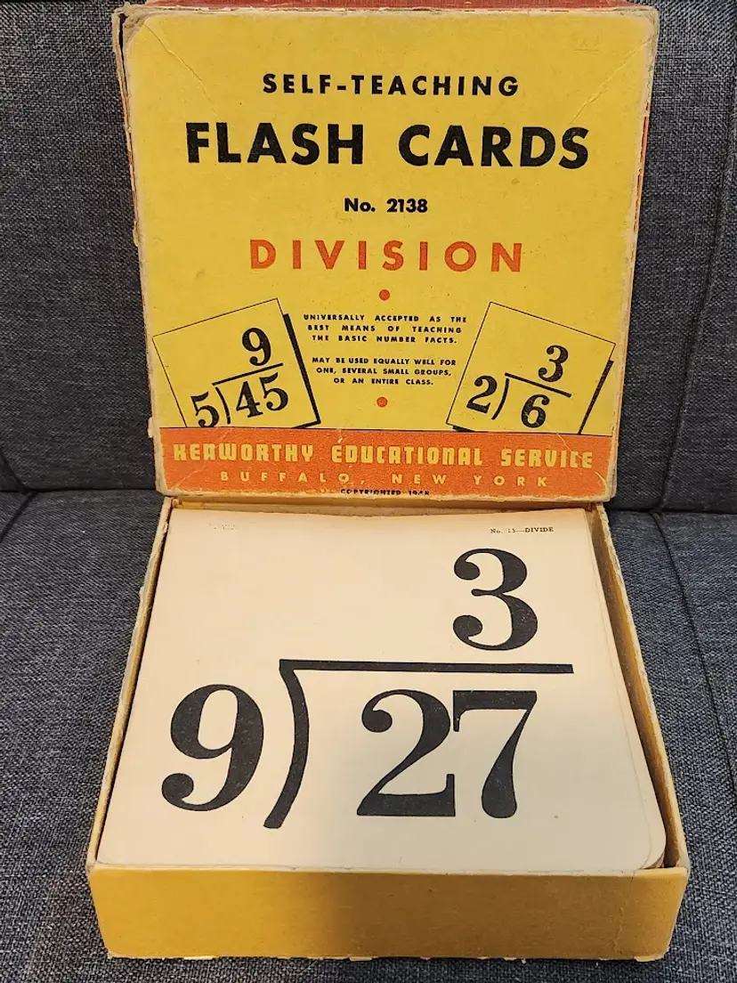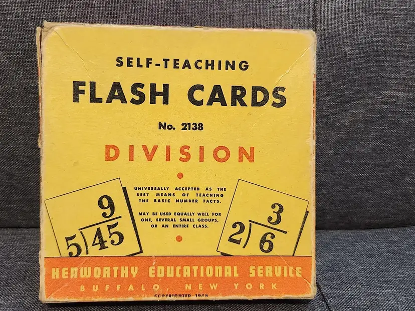 Explore a piece of educational history with this vintage set of division flash cards from 1945. Perfect for collectors or those interested in classic teaching tools.