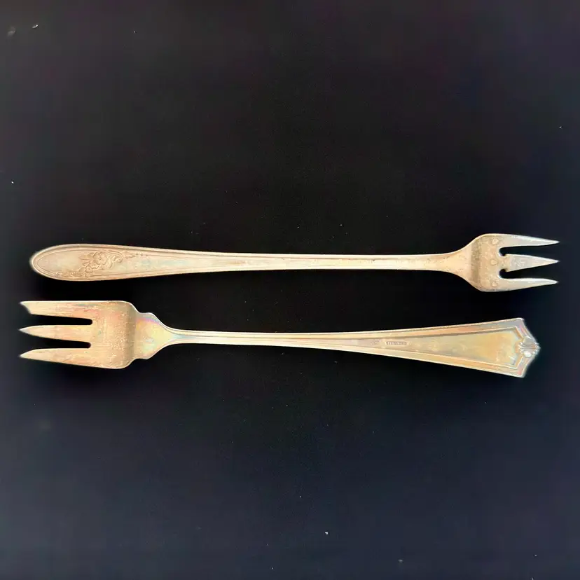 These items are in good vintage condition. No bends or cracks. Patina from age. See all images for details. Use the zoom feature for a closer look. Each measures 6" long. Together they weigh 1oz