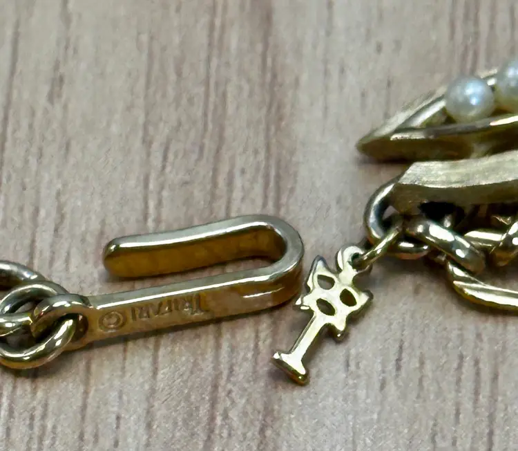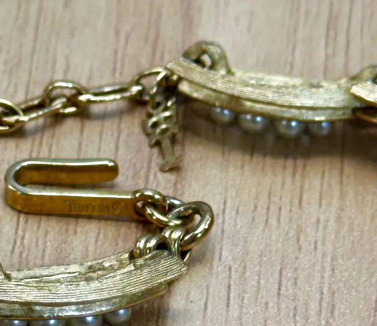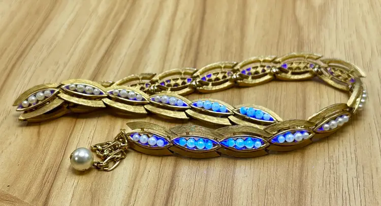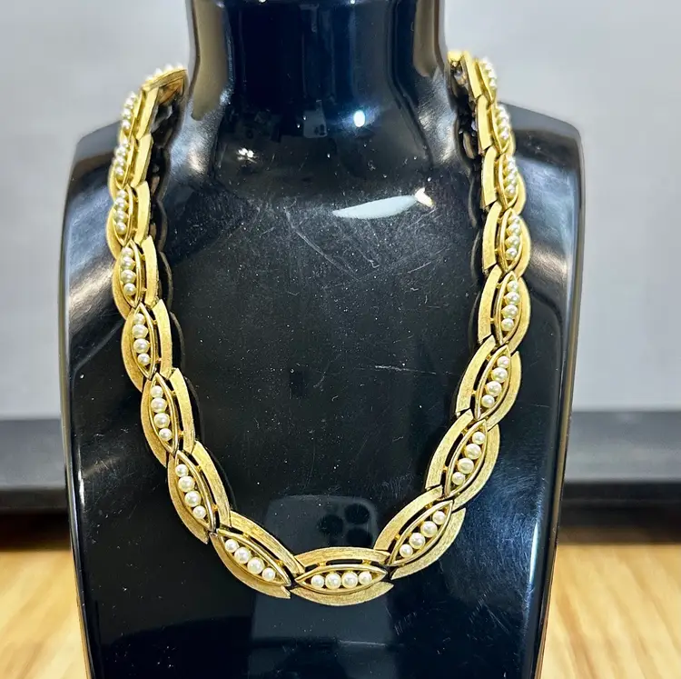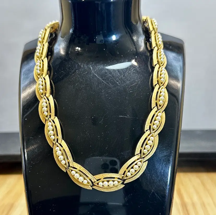 Vintage Crown Trifari Gold Tone Faux Pearls Necklace Glows- As shown and described in pictures - hanging crown Trifari Charm. Flat Rate Combined $5 Shipping