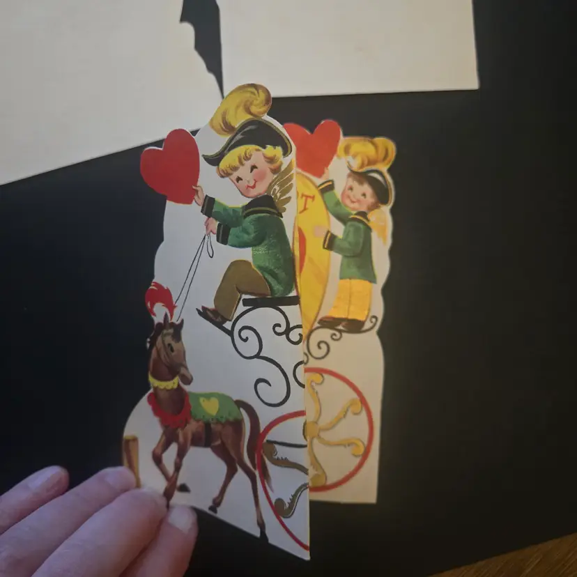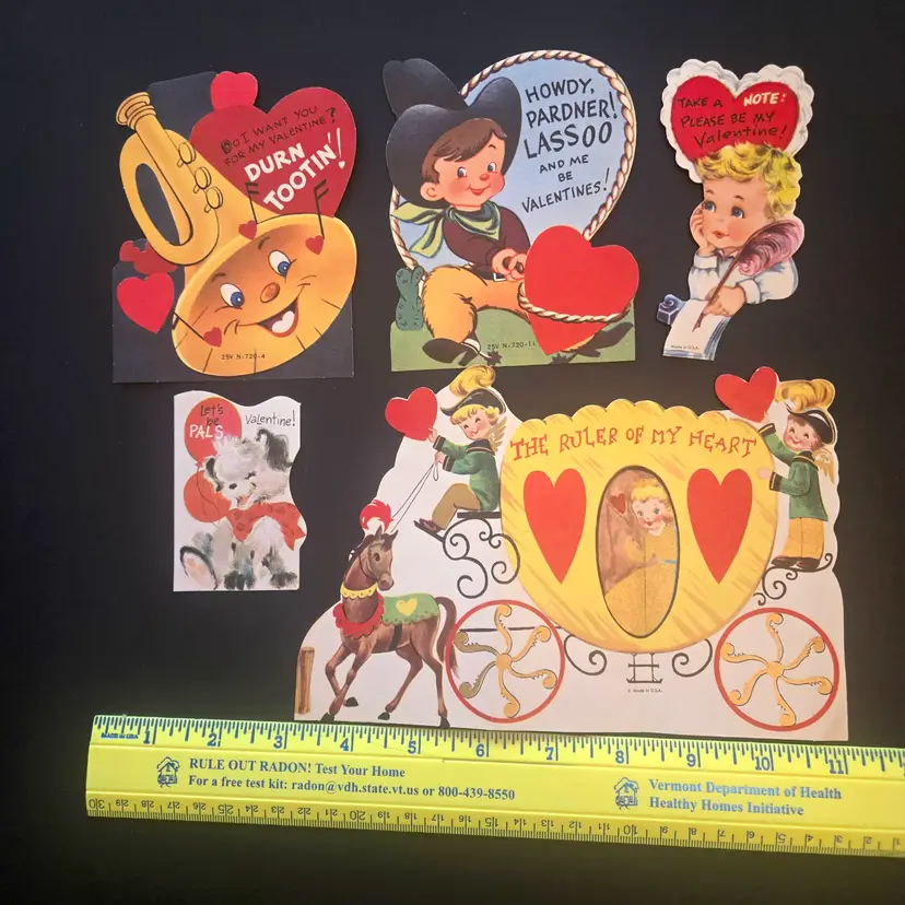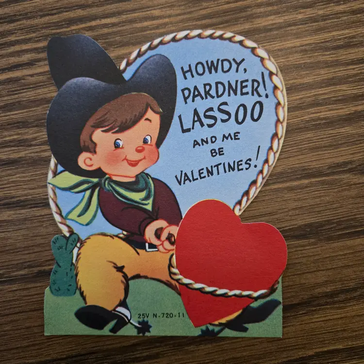 I found these stored away at my dad's house (pet and smoke free) after he died. I've sorted them into categories that may be of interest to collectors or scrapbookers. These are 5 USED cards, one signed by me in cursive, so it must be from around 1958. All have a signature on the back. The larger one has been folded along the original fold lines (I may ship folded to fit a good cardboard envelope).The backs are definitely yellowed from age, but most of them look nice on the front as any older paper would look.
