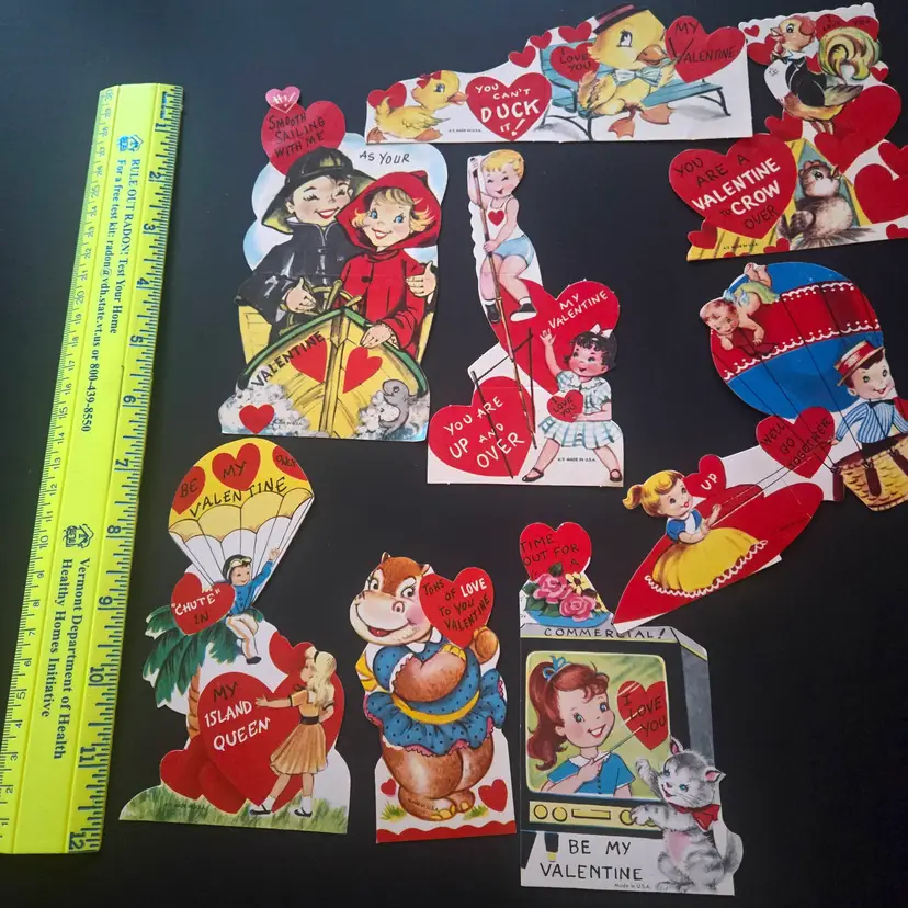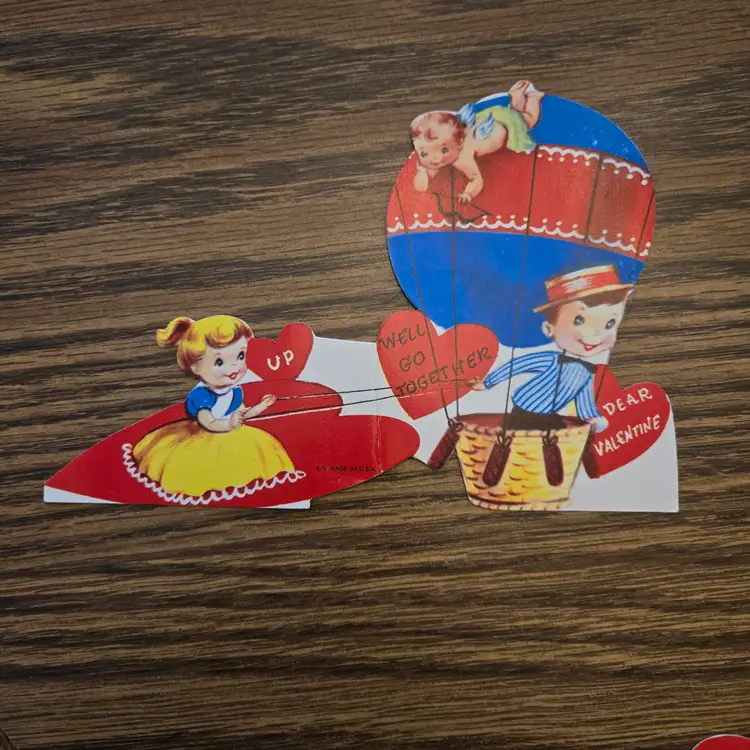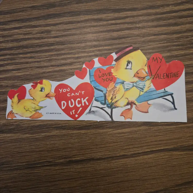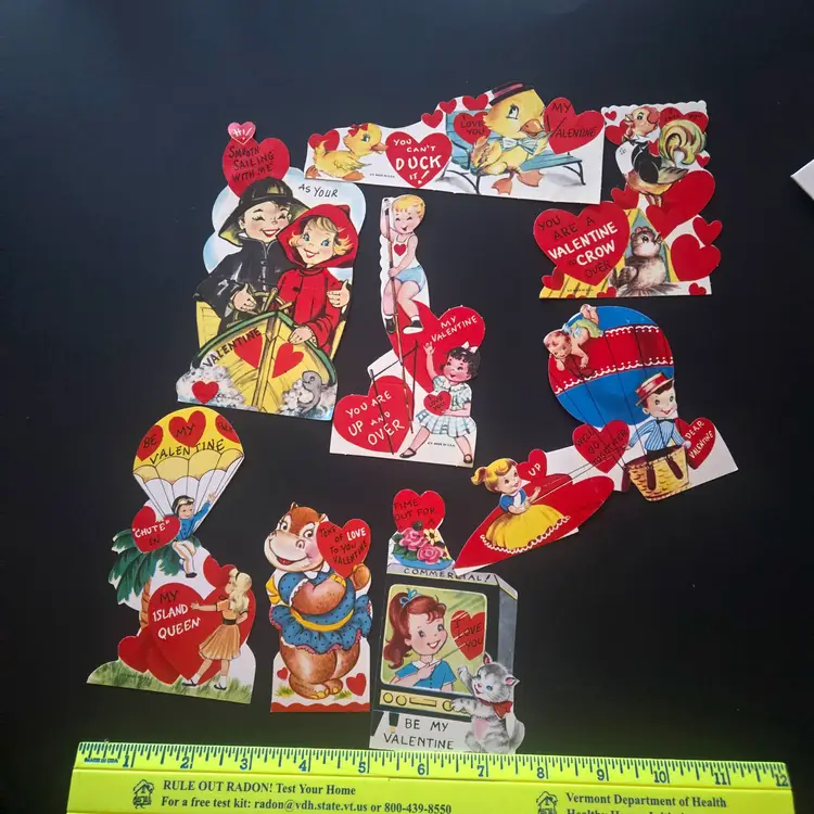 I found these stored away at my dad's house (pet and smoke free) after he died. I've sorted them into categories that may be of interest to collectors or scrapbookers. These 8 UNUSED cards don't have a theme but include some anthropomorphic animals. It appears that some may have been folded along the fold lines but it could just be from age or storage that they appear so. The backs are definitely mildly yellowed from age, but they look nice on the front, just a bit faded from age.