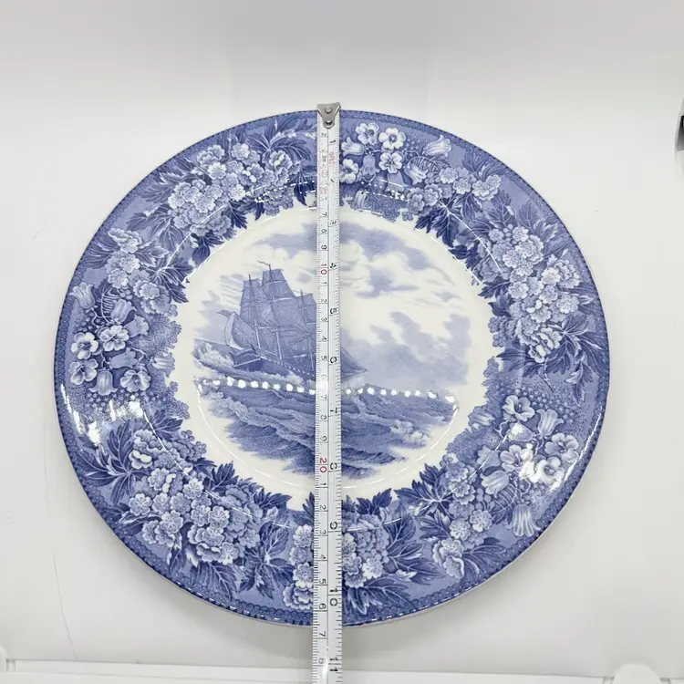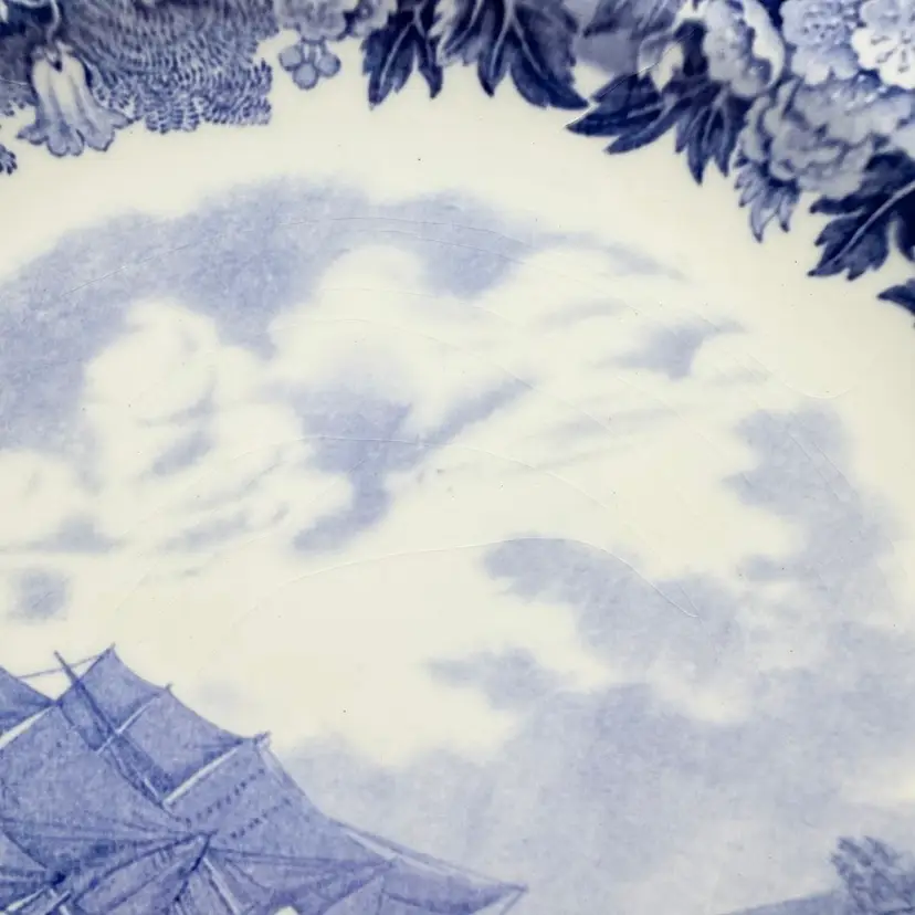 Keywords: Mid-Century, Chase, Commemorative, Souvenir, British, England, United Kingdom, Staffordshire, Transferware, Home, Decor, Decorative, Collectible, Floral, Ocean, Sailing, Masted, Boat, Gift, Present, Christmas, Blue and White, Ceramic