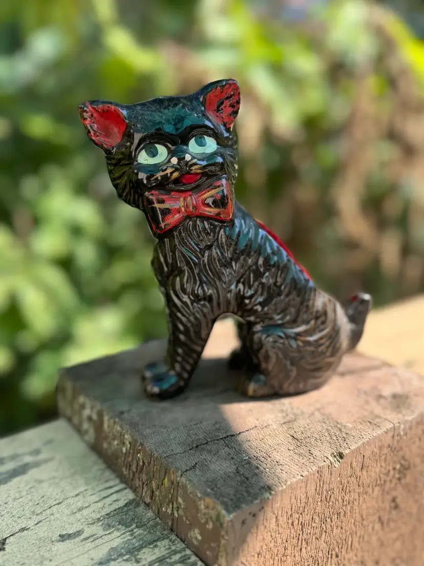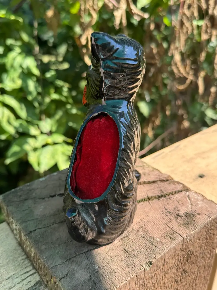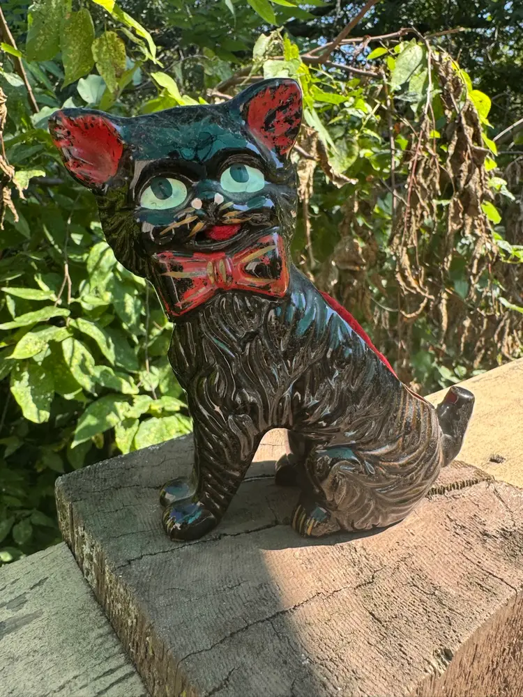 Adorably vintage, black cat pincushion! In wonderful vintage condition. Measures about 5 1/2 inches tall and 4 inches wide.