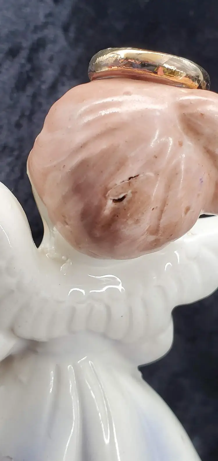 She is in very good condition with no cracks or chips. There is some wear on the tips of her wings and her halo. She is missing her "Japan" stamp, which was likely washed off. Please see pictures for full detail.