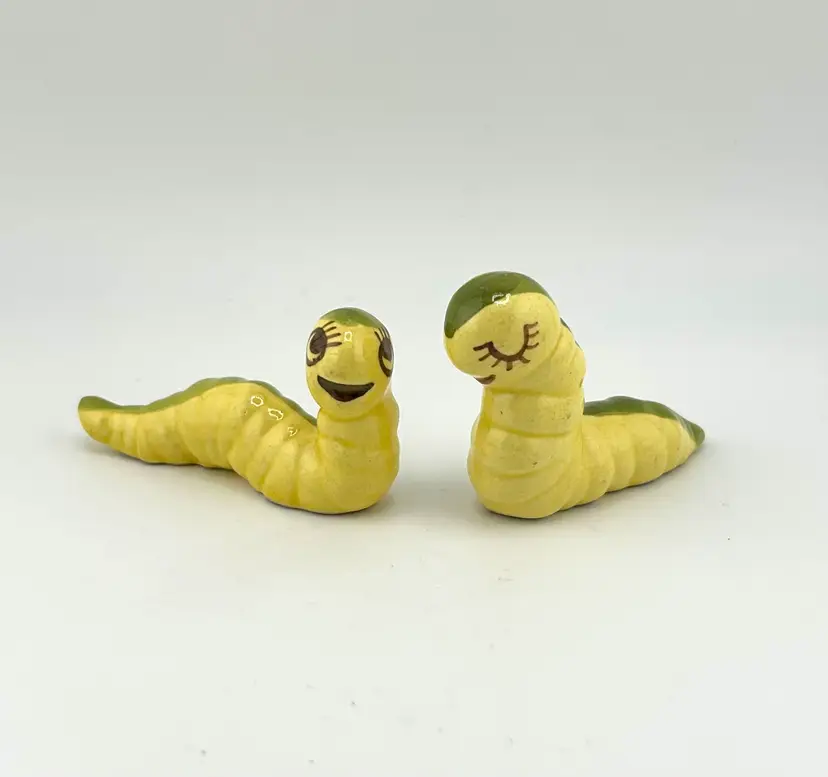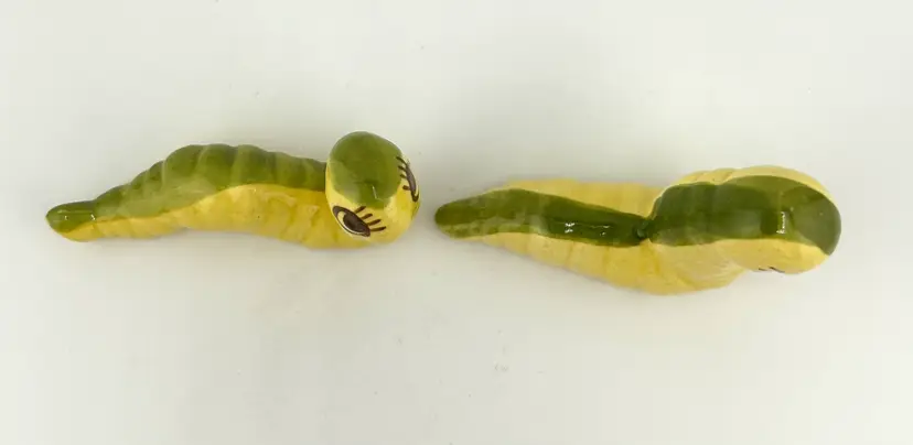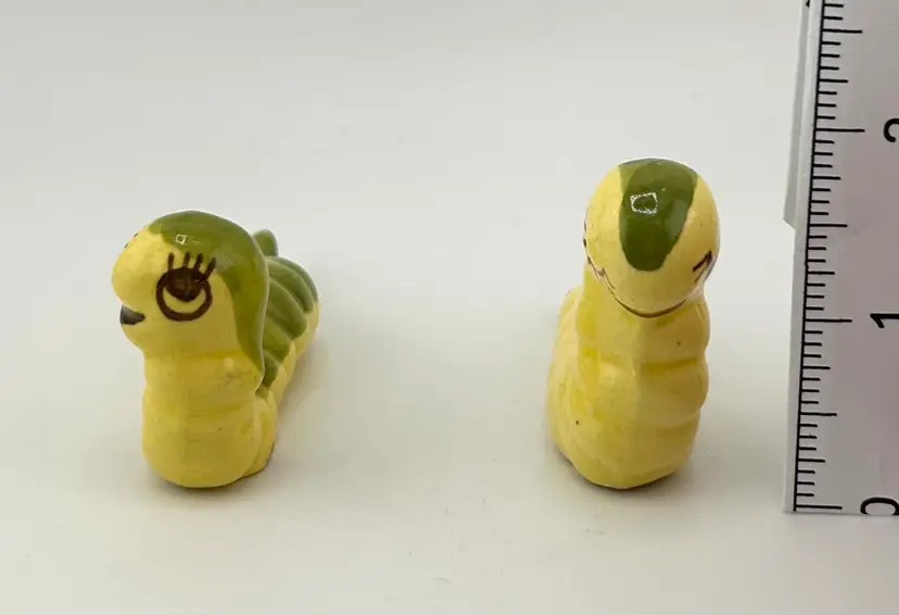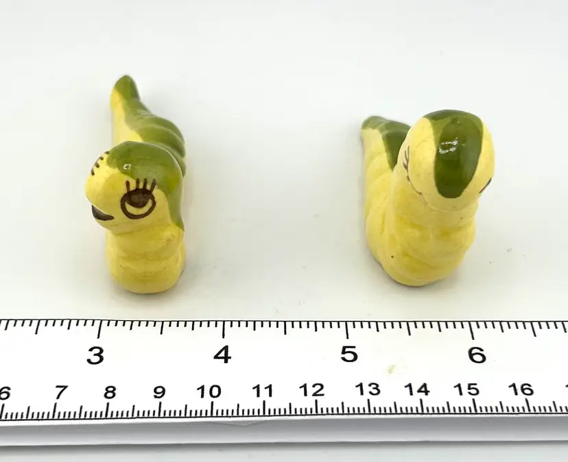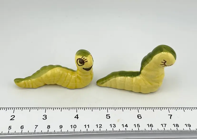 Longer worm has a chip and is 2.75”x .75”x 1.5” Shorter worm is 2.5”x .75”x 2”