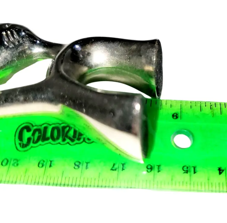 • Made of polished chrome for a reflective finish • Features jeweled eyes adding a touch of elegance • Long tail designed to securely hold rings • Compact and lightweight for easy placement or display • Unique 1950's vintage design