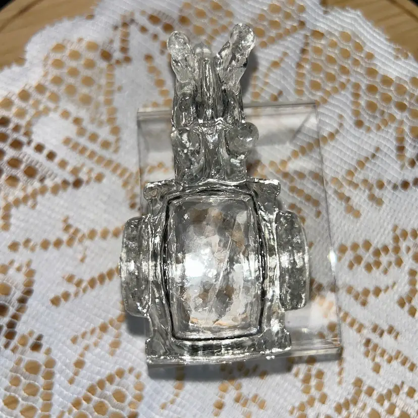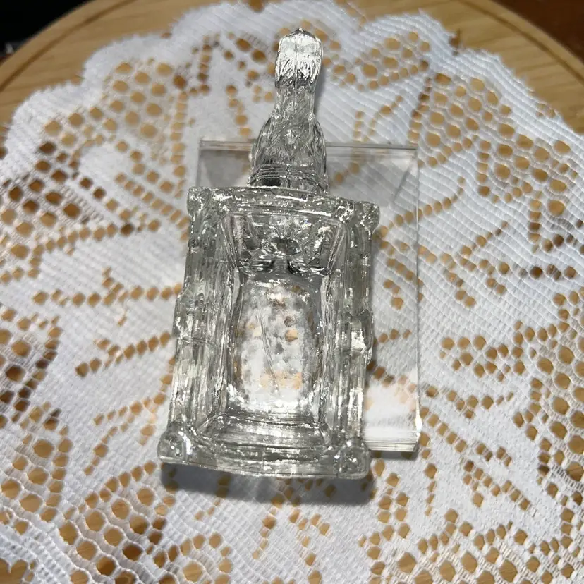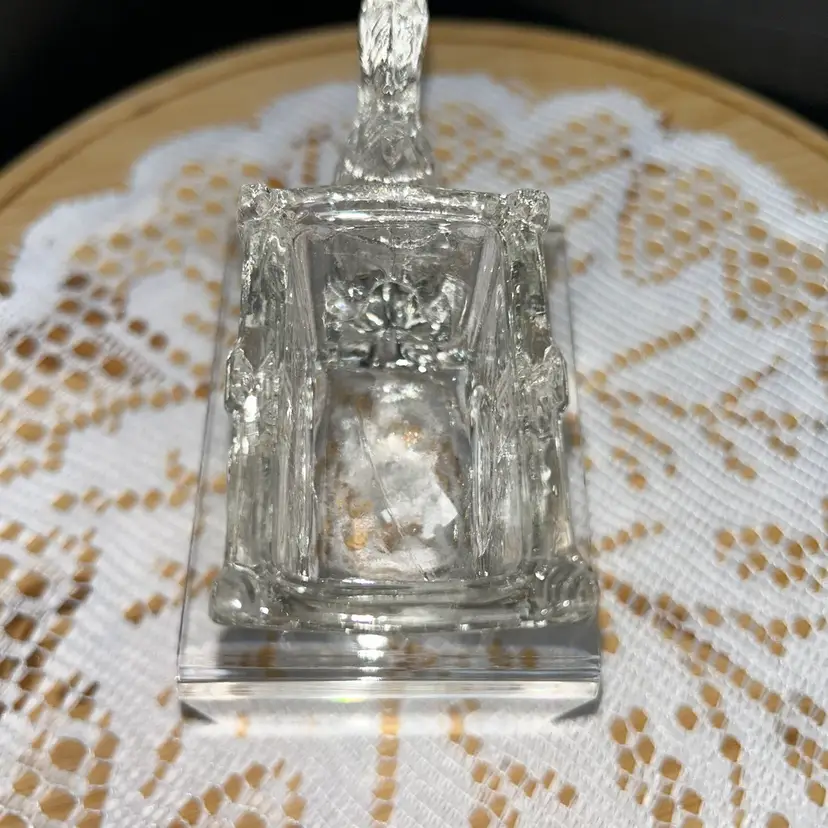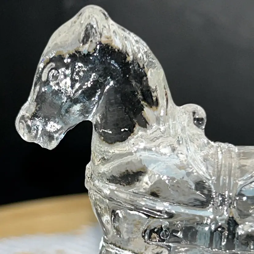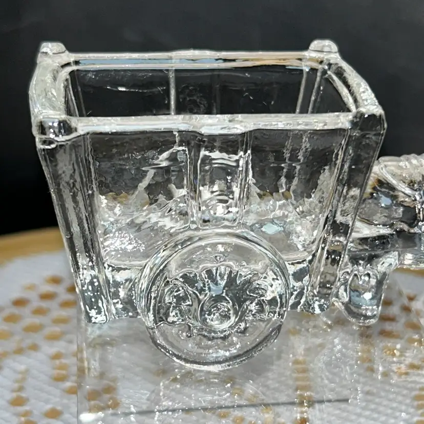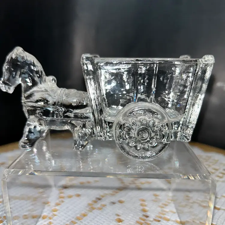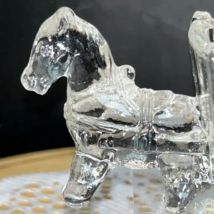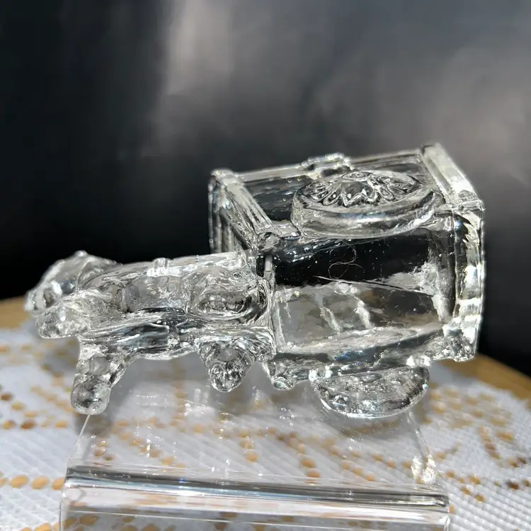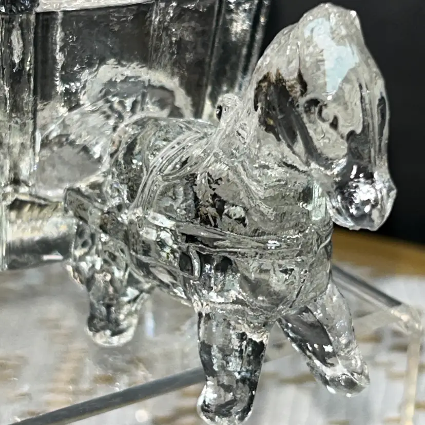 Jeannette Glass created this replica of K. R. Haley Glassware Company’s Crystal horse and cart. 2.25” tall, 4 5/“ long, 2” wide. Excellent condition.